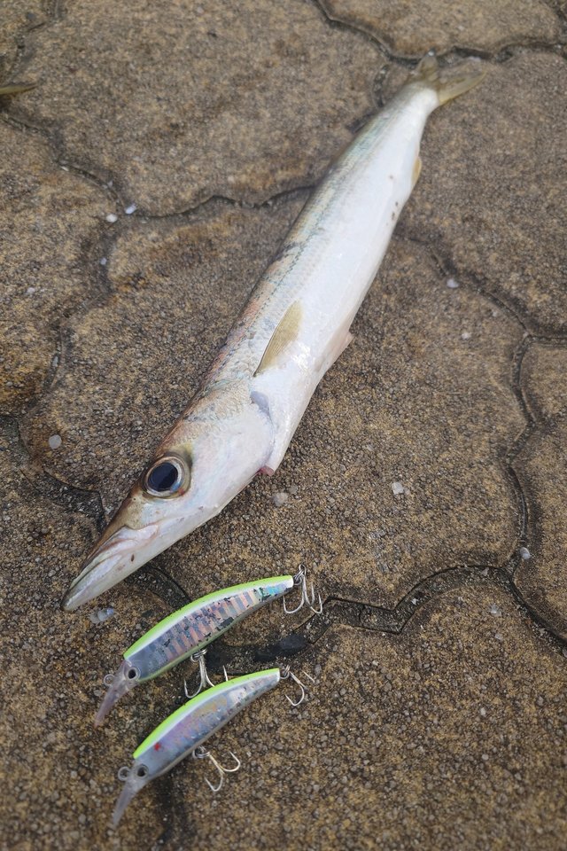 風裏の漁港をランガンし最後の堤防では最初はベタ底で時間が経つにつれ足元表層で食ってくる感じに変わりました。