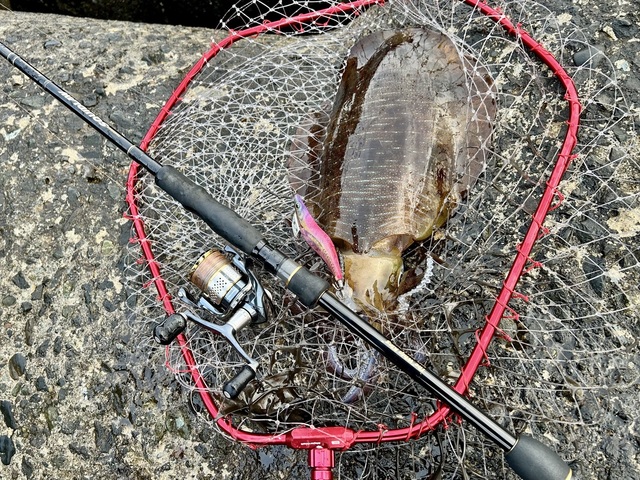 かなりの重量感だったのでフルロックのドラグを緩めて慎重にやりとりをして無事にキャッチ成功!
