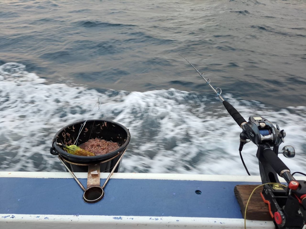 スタートから3時間ほどはフリータイム、その後1時間ずつタイラバオンリータイムとテンヤオンリータイムがあり、沖あがりまでの残り時間はまたフリータイムといったスケジュール
