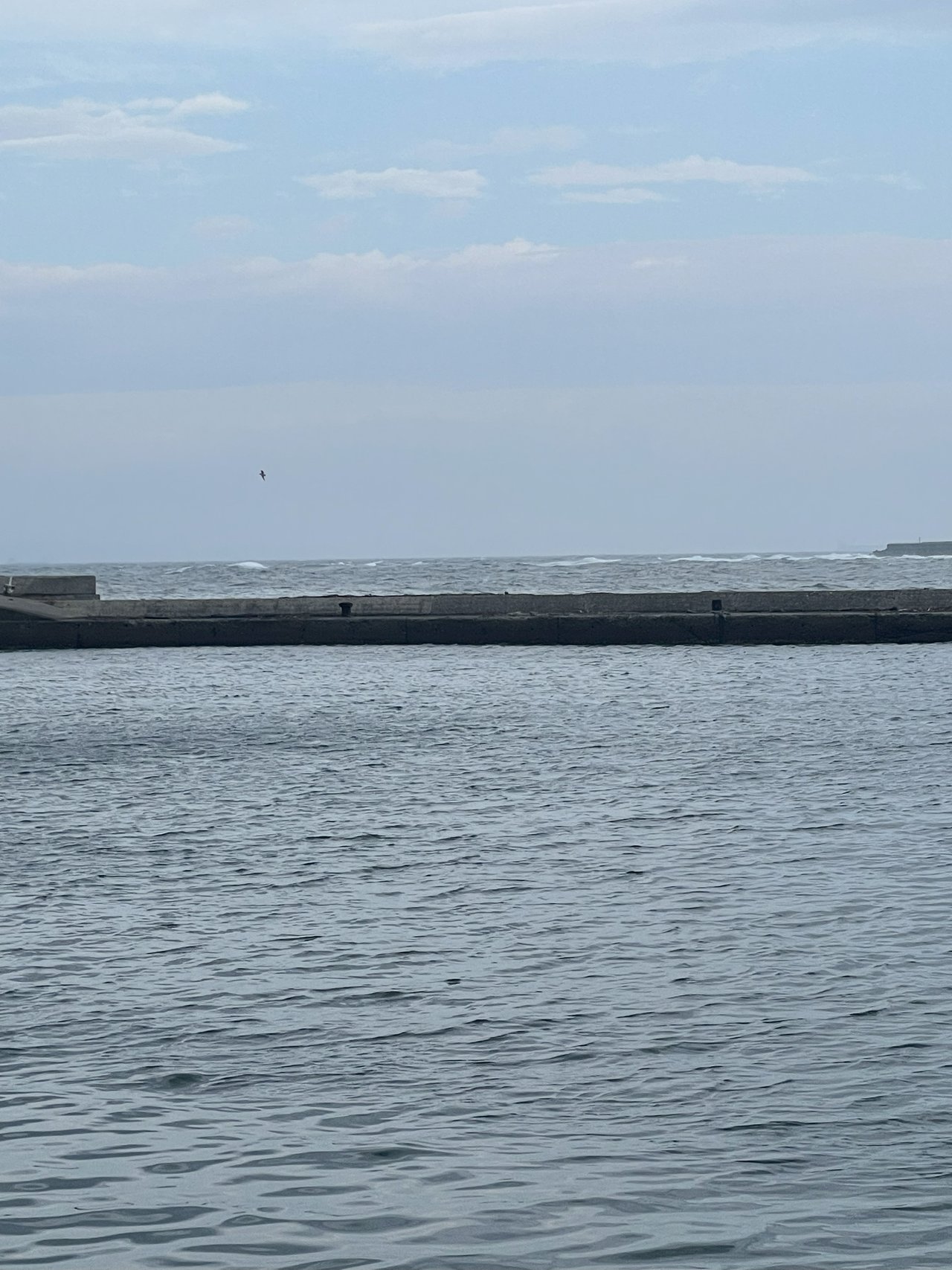 段々と明るくなるにつれ、外海が見えてきたのですが、白波が凄い(笑)