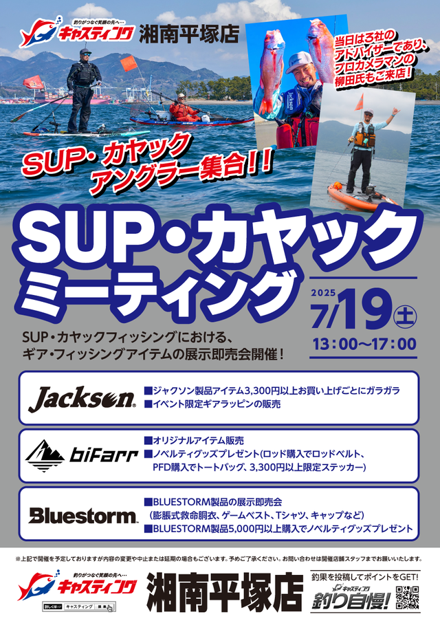 暑いですが、SUPカヤックイベント7/19に開催します!ご来店お待ちしております。