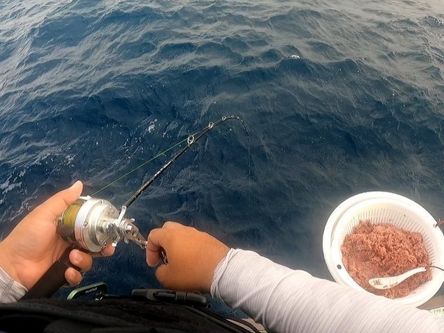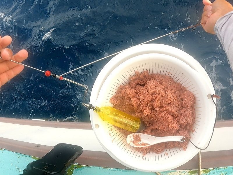 滝汗をかきながらポイントに到着。支度を済ませてコマセを撒いてみると