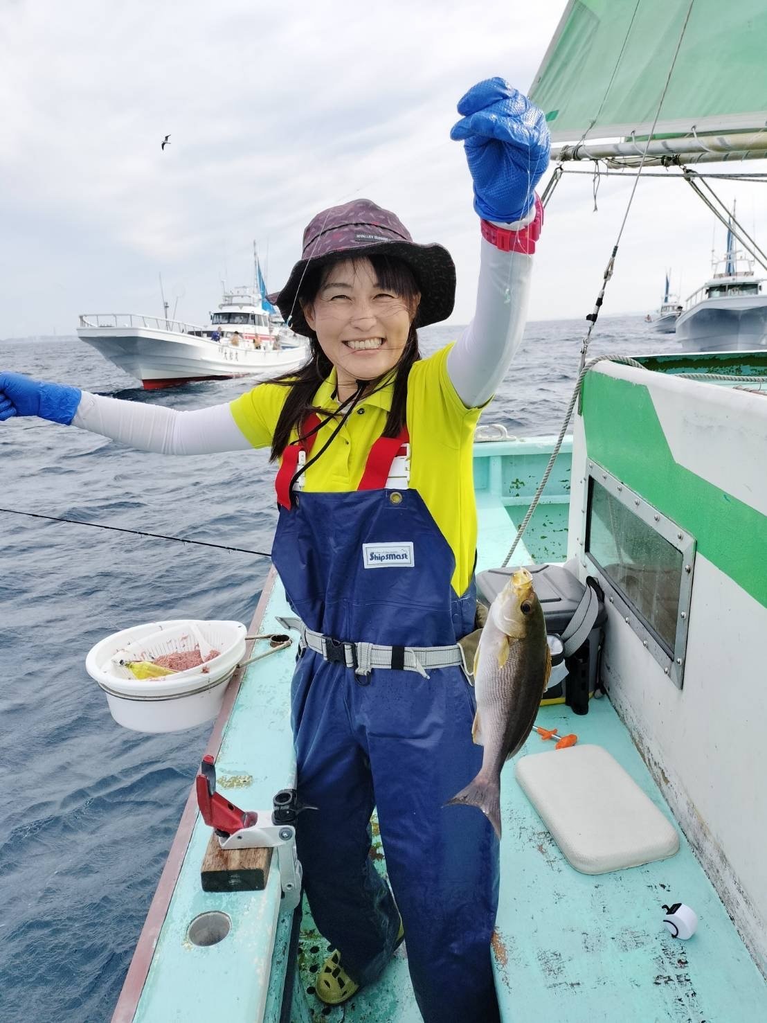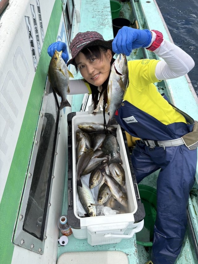 船が揺れて釣りづらいと思いきや、魚は元気にアタッてきます♪楽しいー!!