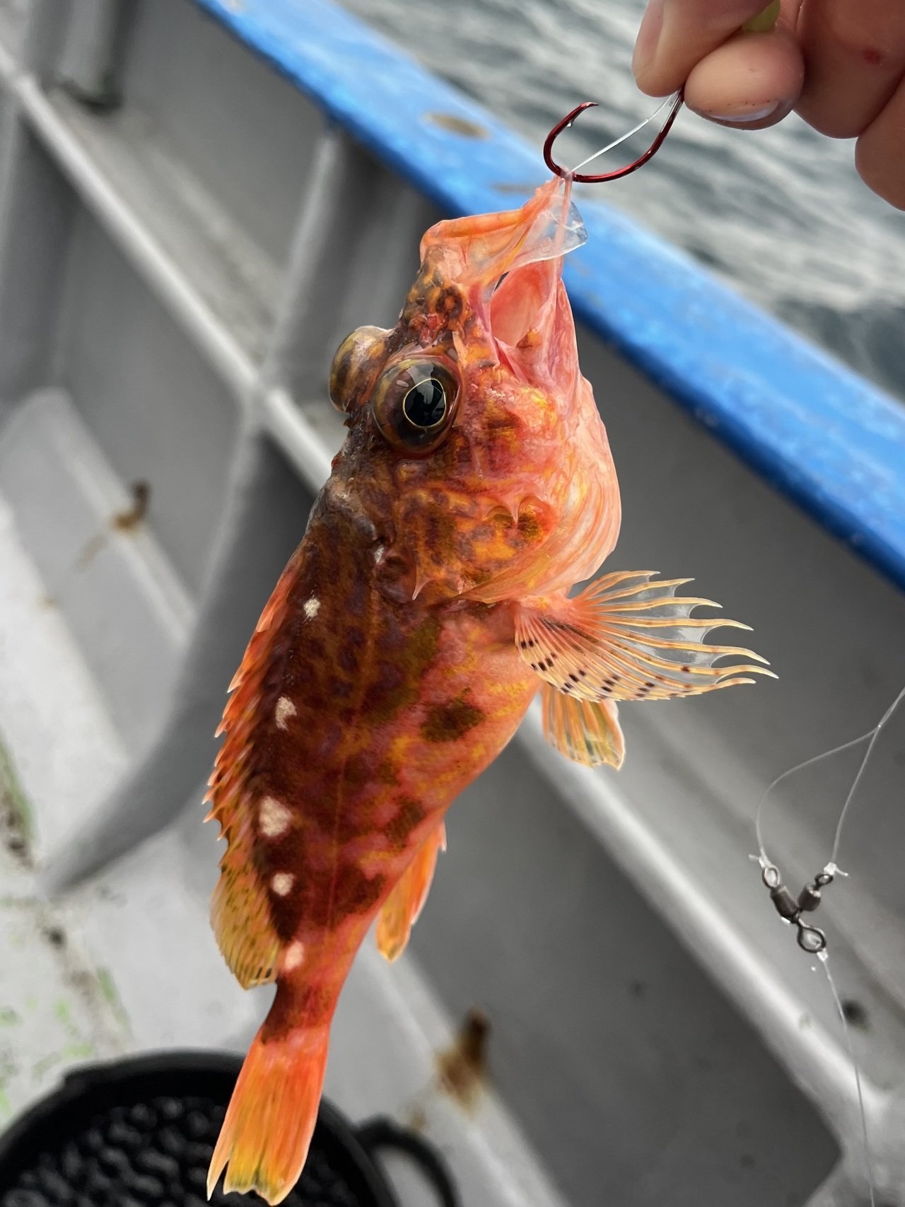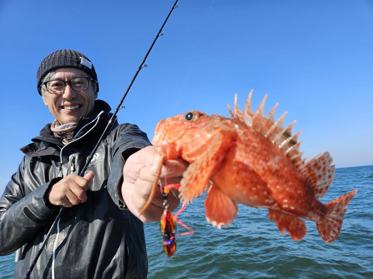 上がってきたのは嬉しいゲストのオニカサゴ!残るはマダイのみ!