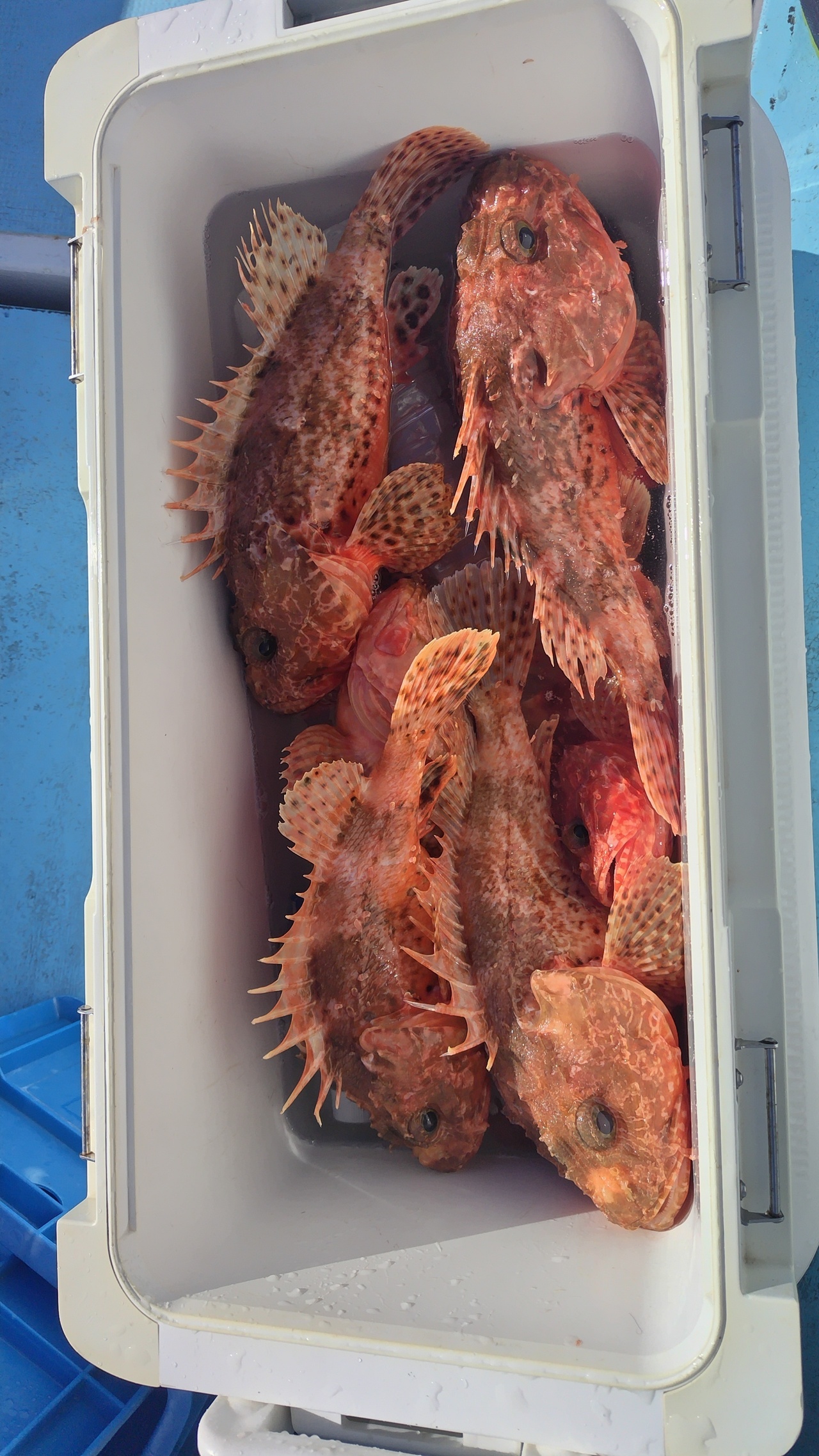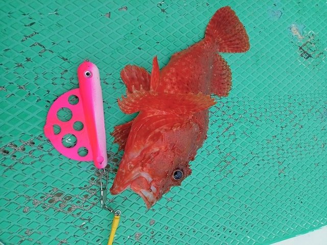 起き上がり30分前に船内でオニカサゴとカンコが釣れ始め