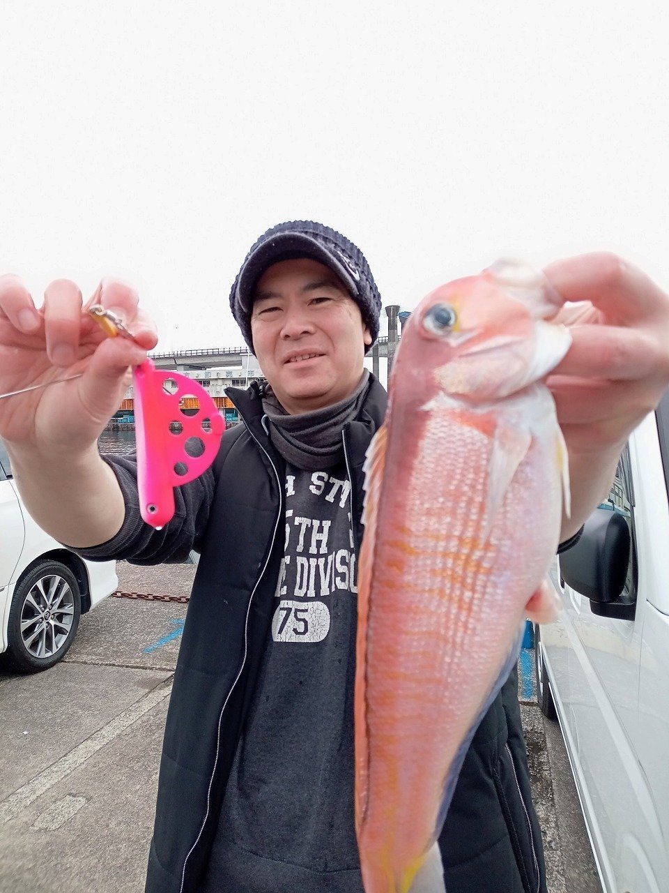 ただこの日も海上では雪は降りませんでしたが、極寒のうえ、好ポイントの真鶴沖が強風・ウネリで入れず、小田原~大磯沖での釣りとなりました。※いろいろポイント探してくれた船長さんに感謝!