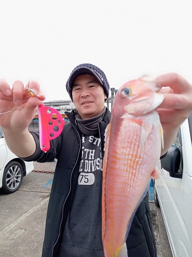 その前回は春先に良くみられる海のヨゴレにやられ、アタリが極端に少なく苦戦しました。あれから3週間が経ち、良い変化を信じての釣行でした。しかしながら、結果から言うと惨敗!!まだ、ところどころにヨゴレが残り、実績があるポイントも外道1匹当たらない場所も多数でした。とにかく、綺麗な潮を探してのランガン釣り。数十か所流してようやく1カ所だけレンコダイの活性が高い場所を発見!!なんとかレンコダイのお土産を確保して終了!!本命こそあまり釣れませんでしたが、仲間とワイワイ楽しい釣行となりました!!潮が戻れば釣れると信じて!アマダイは再度リベンジしたいと思います!皆様も是非お出かけください!!