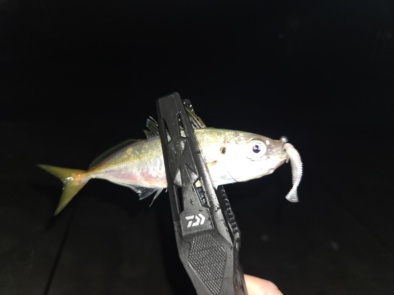 暗いうちはアジング、早速2投めでアジが釣れ幸先よく期待するも続かず…。マヅメも思ったほどバイトなく、強風でやり辛さもあって以降は追加に苦戦しトータル5匹キャッチ♪
