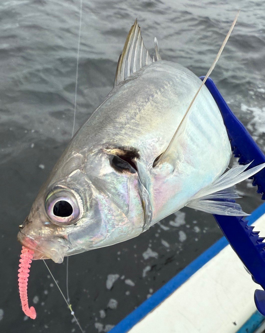 しかし同行者がアジを釣り、そのヒントで何とかバイトあって無事キャッチ。