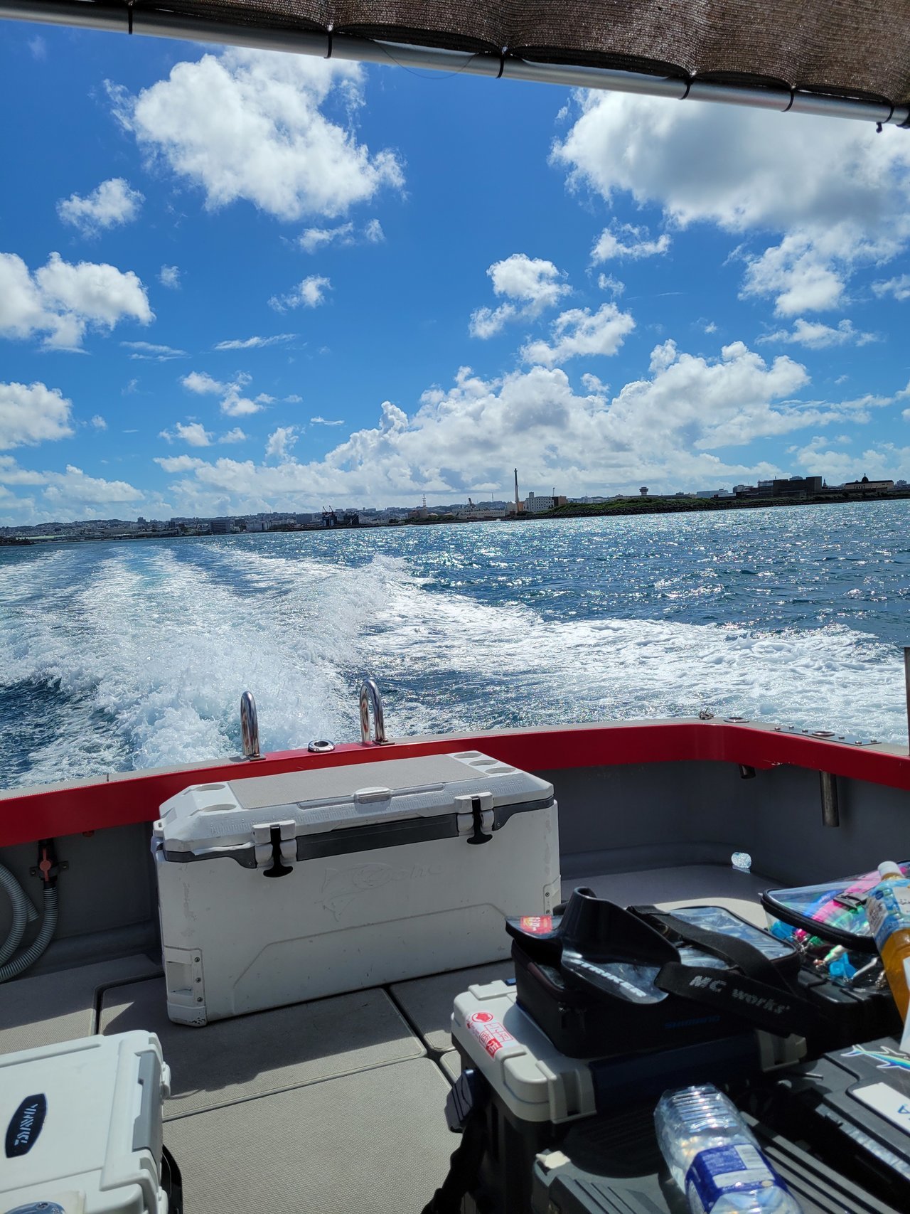 初日は本島のシャローエリアから開始。台風の影響で波が高く風裏のポイントがメイン。リーフからのドロップを狙いましたが釣れたのはバラクーダのみ。
