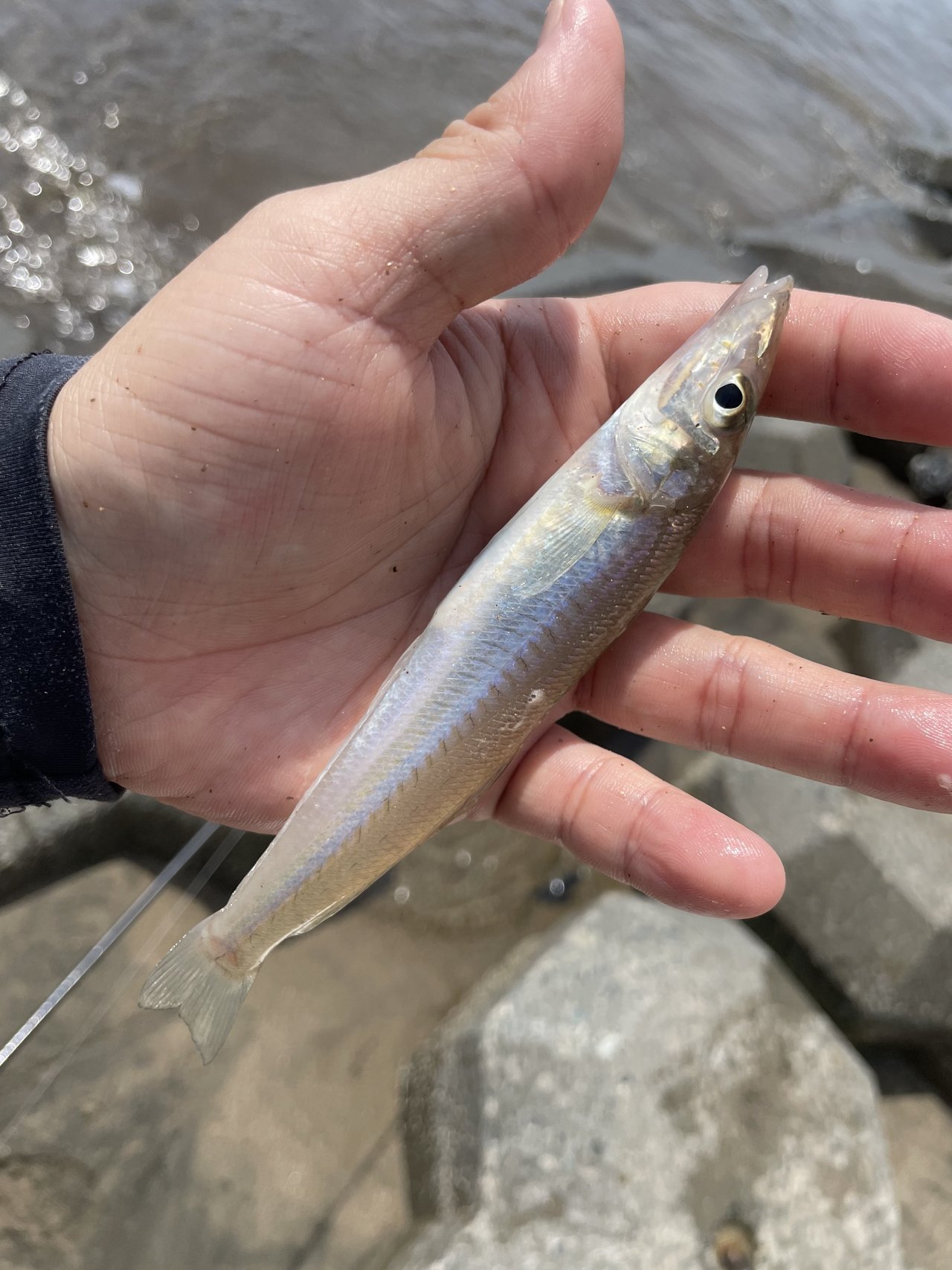数日前までの大雨でかなり濁っており不安でしたが、1投目から本命のキスをゲット!