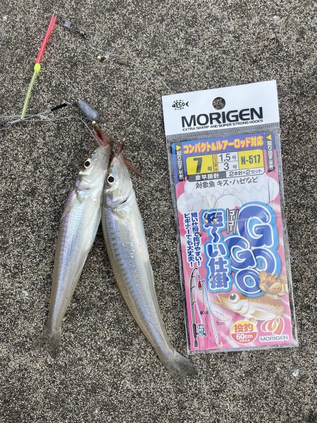 その後も同じようにカケアガリで止める作戦で小型キスを2匹追加するもそのあとはシロギスは釣れず。