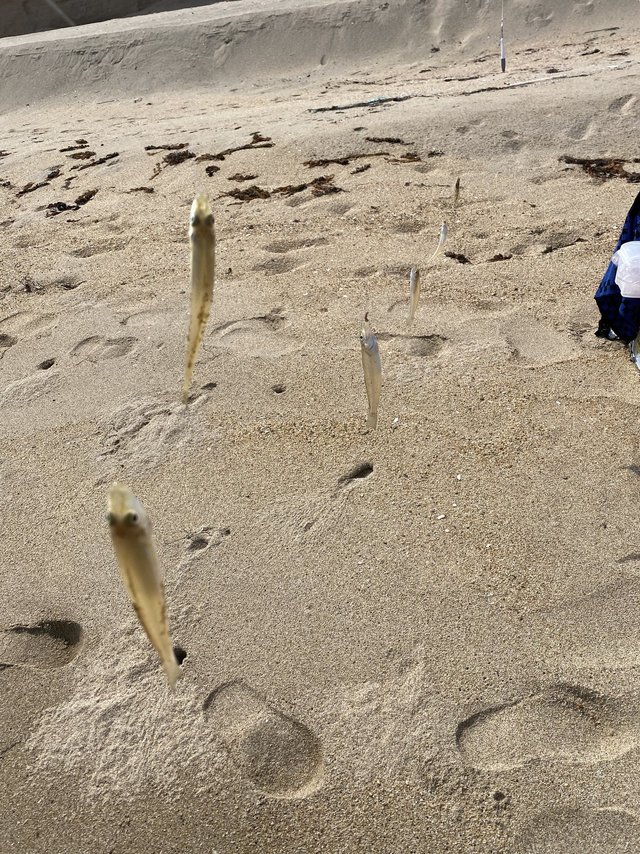 先ずは70m位キャストして探っていると50~60m位で小気味よいアタリが!元気いっぱいなキスちゃんでした(^^)それからはポツポツと釣れる感じで型は小さめでした!これから徐々にサイズも上がってくると思います。釣って楽しい食べて美味しいキス釣りおすすめです(^^)