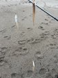 午後からスタートでまずはチョイ投げでキス狙い、色々な方向へ投げて探るとアタリの多い場所がありポツポツ追加して6匹キャッチ♪