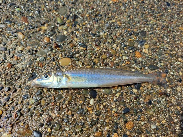 キスが釣れてきた情報があったので、完全キス狙いでとりあえず投げまくって魚から何かしら反応がある所を探しますが、アタリもなくエサすら取られない…厳しい~それでも諦めずにようやくアタリが!しかも金属的なキスっぽいアタリなので確実にエサを喰い込ませてからの~来た~本命しかも良型!その後も何回かアタリはあったものの残念ながらこの1匹で終了。まだ固まっている感じではないですが、今後に期待!サビキは夕方薄暗くなってから、隣の釣り人がトリック仕掛で25~30㎝程の良型サバ連発させていましたが、サビキ組は不発…稚鮎を追いかけ回しているので、ジグサビキなんかが良さそうでしたので、タックルBOXに一つ忍ばせておいた方が良いかも。暗くなるとまだまだ肌寒いので、寒さ対策は忘れずに!