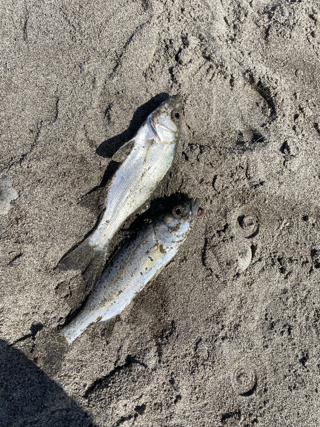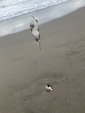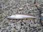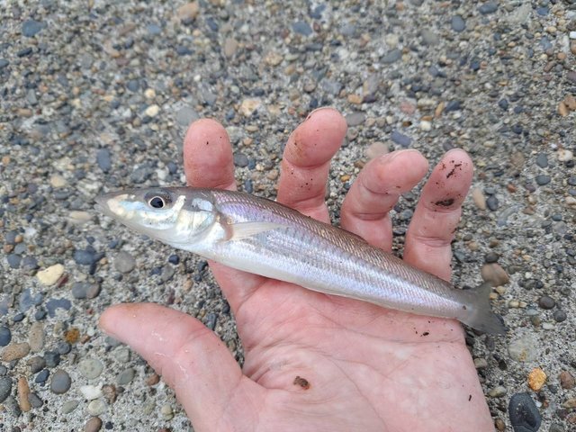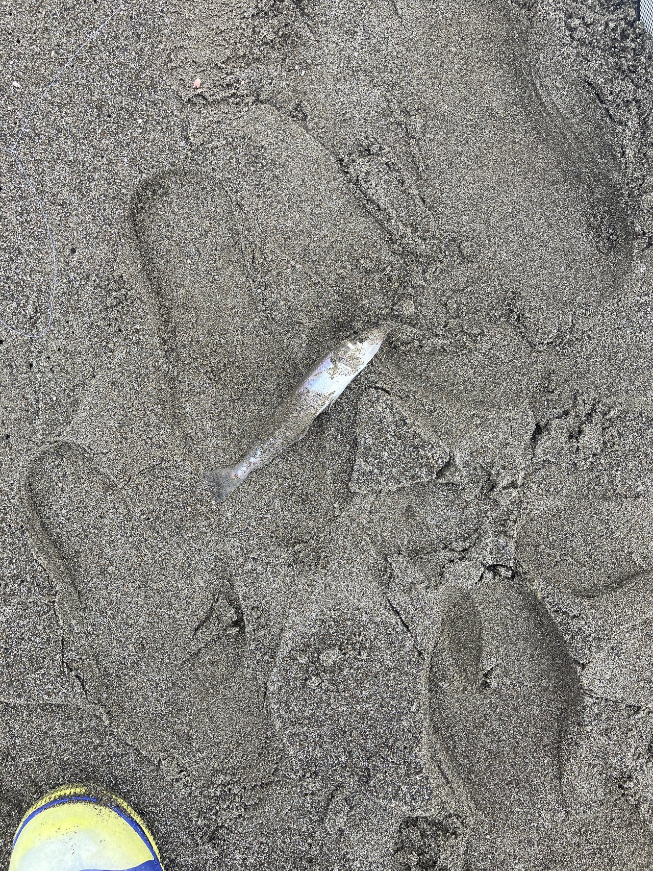 波打ち際に上がってきたのは、20㎝のシロギス、そこそこのサイズです!