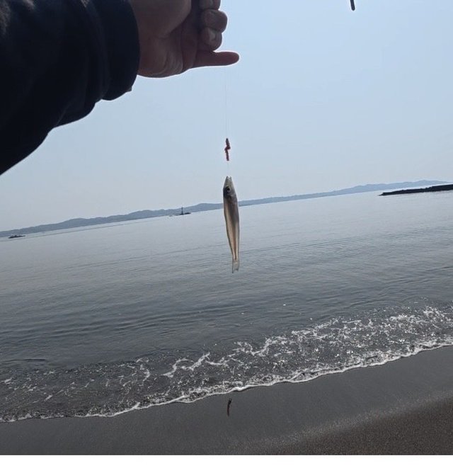 周りの釣り師を見ているとあまり釣れていないようですが、1投目でピンギスが釣れました。10cmぐらいの魚でしたが、今年最初の魚なので嬉しいですね~。2投目も同サイズが釣れ、絶好調かと思いきやそこから2時間アタリ無かったので1尾追加後、11:00には諦めて移動を決意。試しに船形海岸に行ってみました。