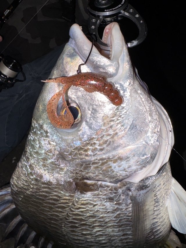 濁っていたのでワームは濃いめ・強めのコーヴァイチューグリパンシルエットを選択。カキ瀬に乗ったタイミングでパンと弾いてイレギュラーを入れるとひったくるようなバイトが!!このパターンが良かったようで良型3枚キャッチできました!