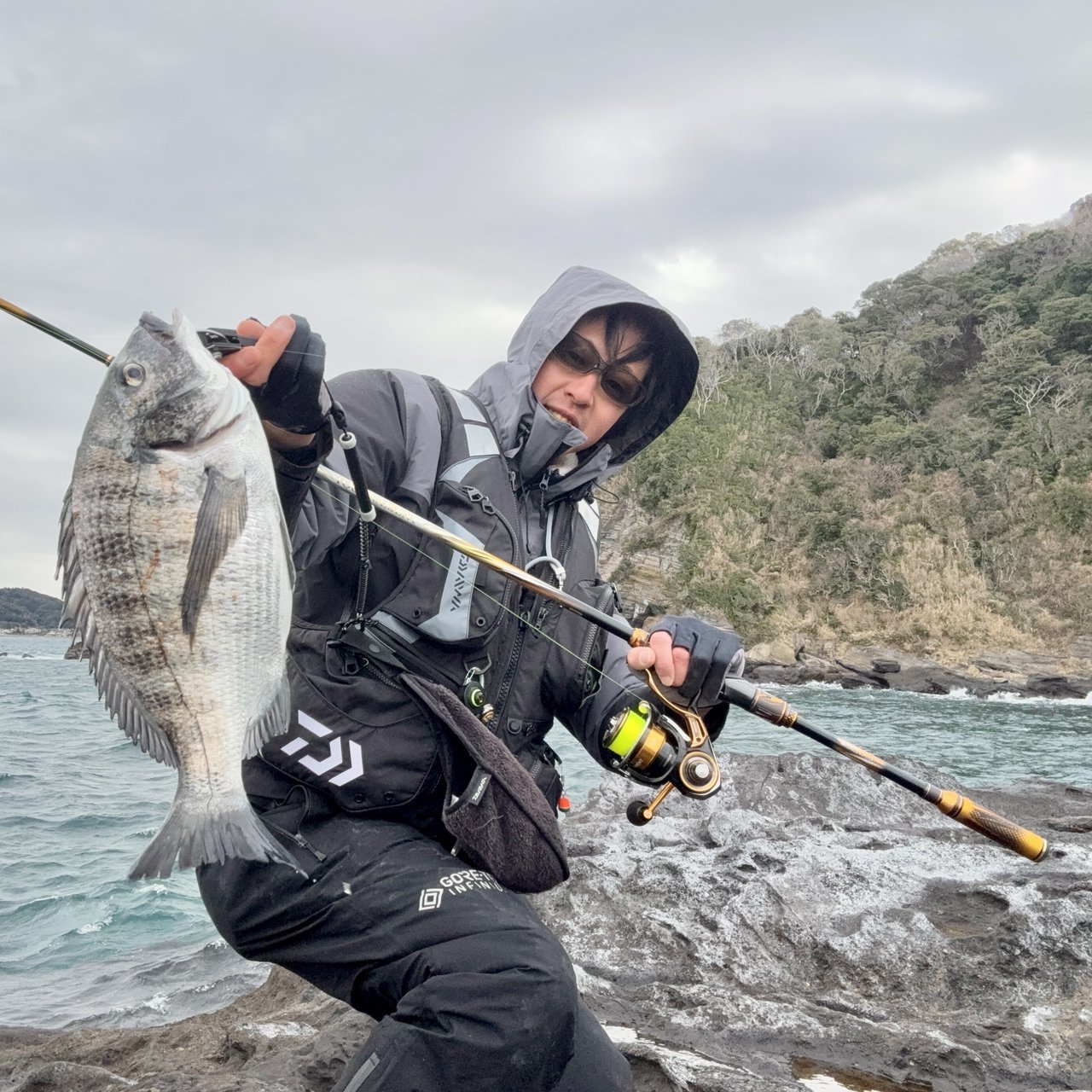 こんにちは!スタッフ佐久間です!初釣りは寒グレを狙いに行ってきました!渡船は暴風&高波で出ず。風裏になりそうな地磯を案内してもらい、釣行。雰囲気はめっちゃ良!がグレの気配はないので少し下のタナを探ってみると、、チヌが登場!