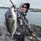 佐藤店長も渋い中、仕掛けをアジャストさせて同サイズのクロダイをキャッチ!