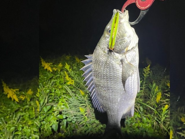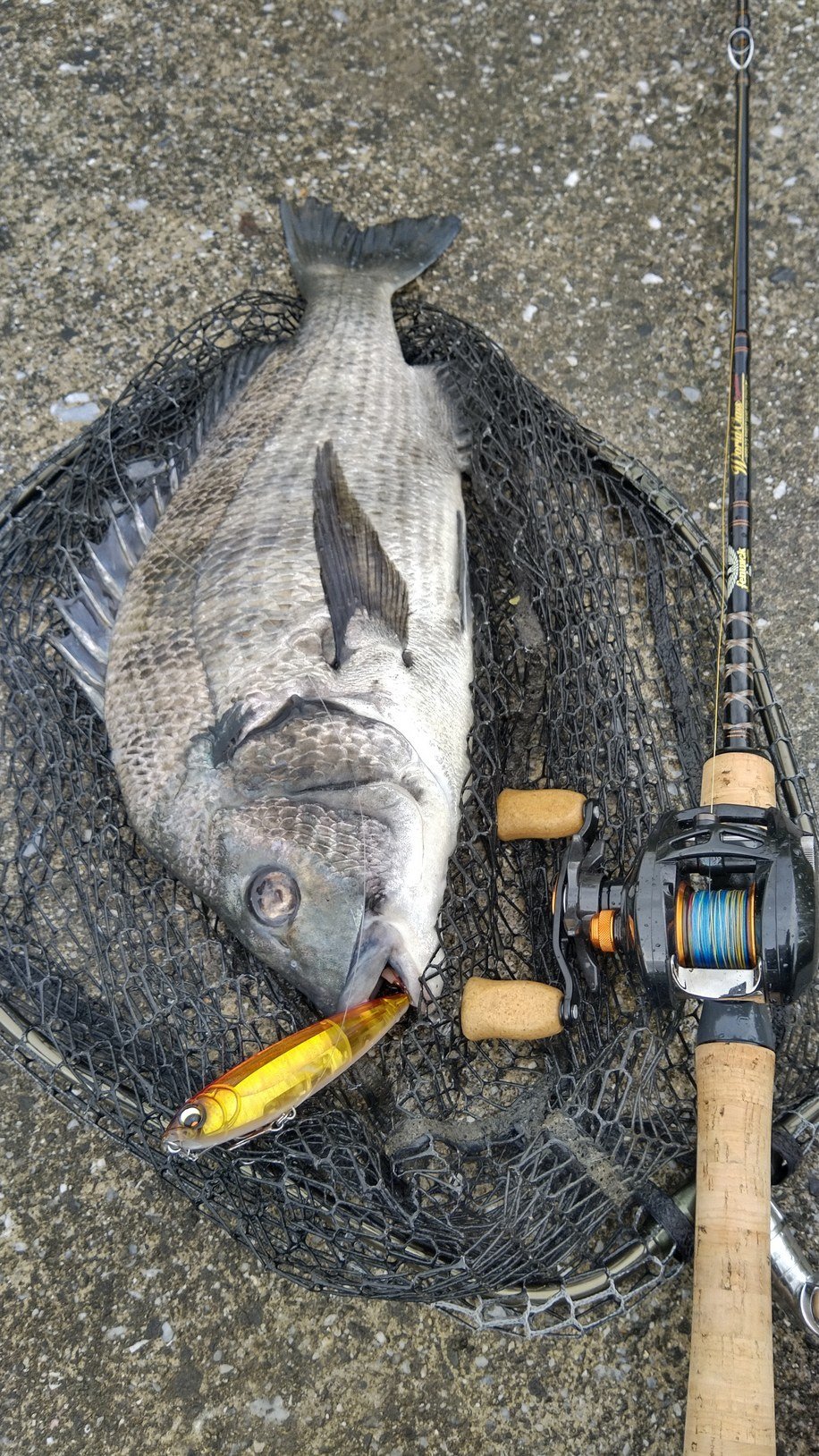連休だったので、懲りずにチニングに行ってきました。流石に昨日の今日でどうなのかとトップウォータールアーを投げていると、昨日と同じシチュエーションでチェイスがありバイトに持ち込むことができました。しかし1匹釣りあげた後は、これまた昨日と同じでチヌの警戒心マックスなのかチェイスすらなくなり終了しました。毎回1匹ずつですが、トップで釣れていることに感謝して今シーズンは釣れなくなるまで釣行してみようと思います。