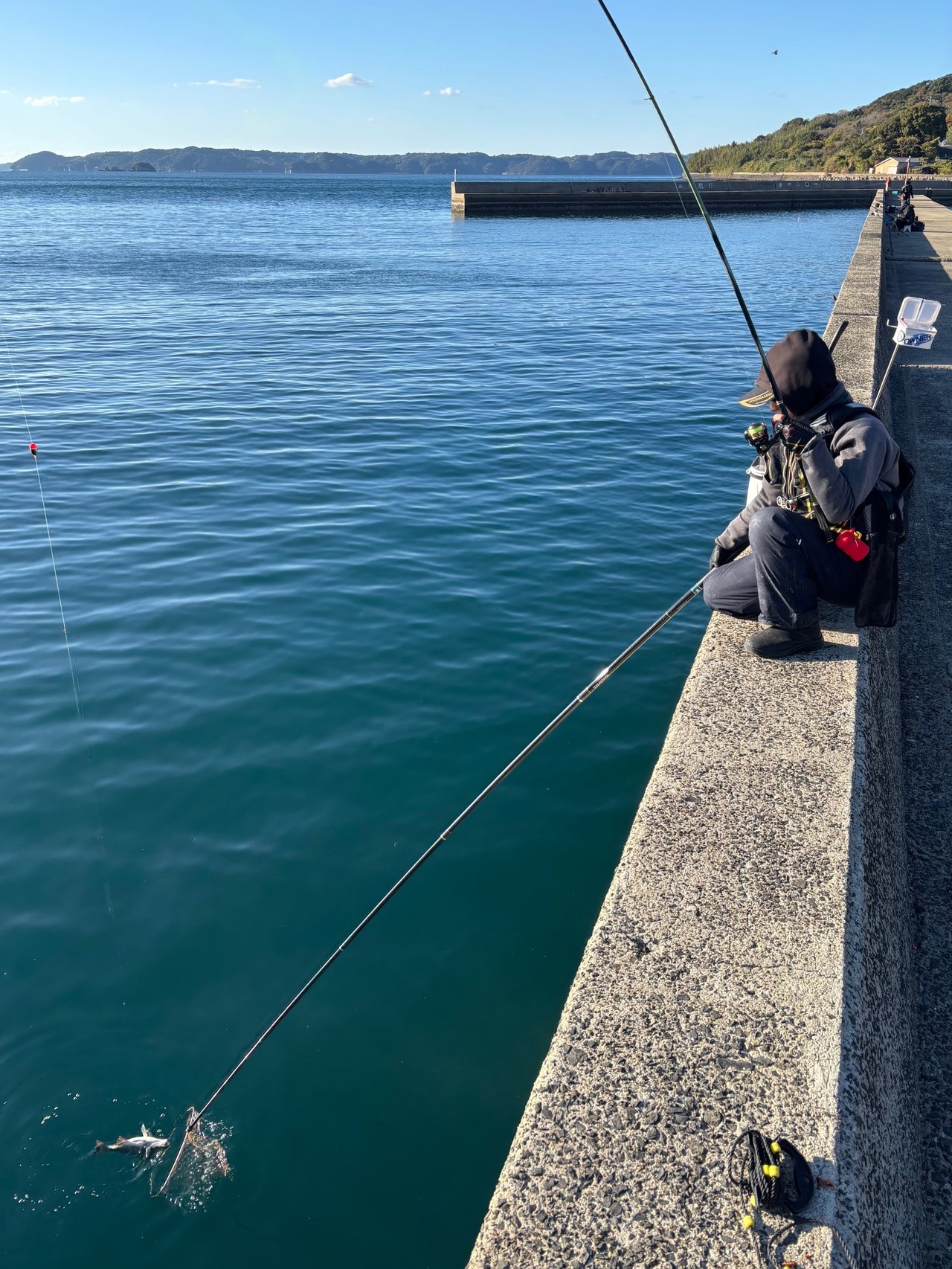 雨予報ではありましたが、短時間勝負で波止チヌに行ってきました。12月ですがエサ取りは多く、まだまだ寒チヌという感じではありませんでした。今回はマキエを底に集め、棒ウキで底付近を狙うポイント釣法です。しっかりマキエを打ってから仕掛けを組んだのが功を奏し、なんと1投目からチヌをキャッチ。チヌの活性は高くすぐに2枚目もキャッチ。それからはフグの猛攻と強風に苦しみ、最後は雨が降ってきて納竿としました。