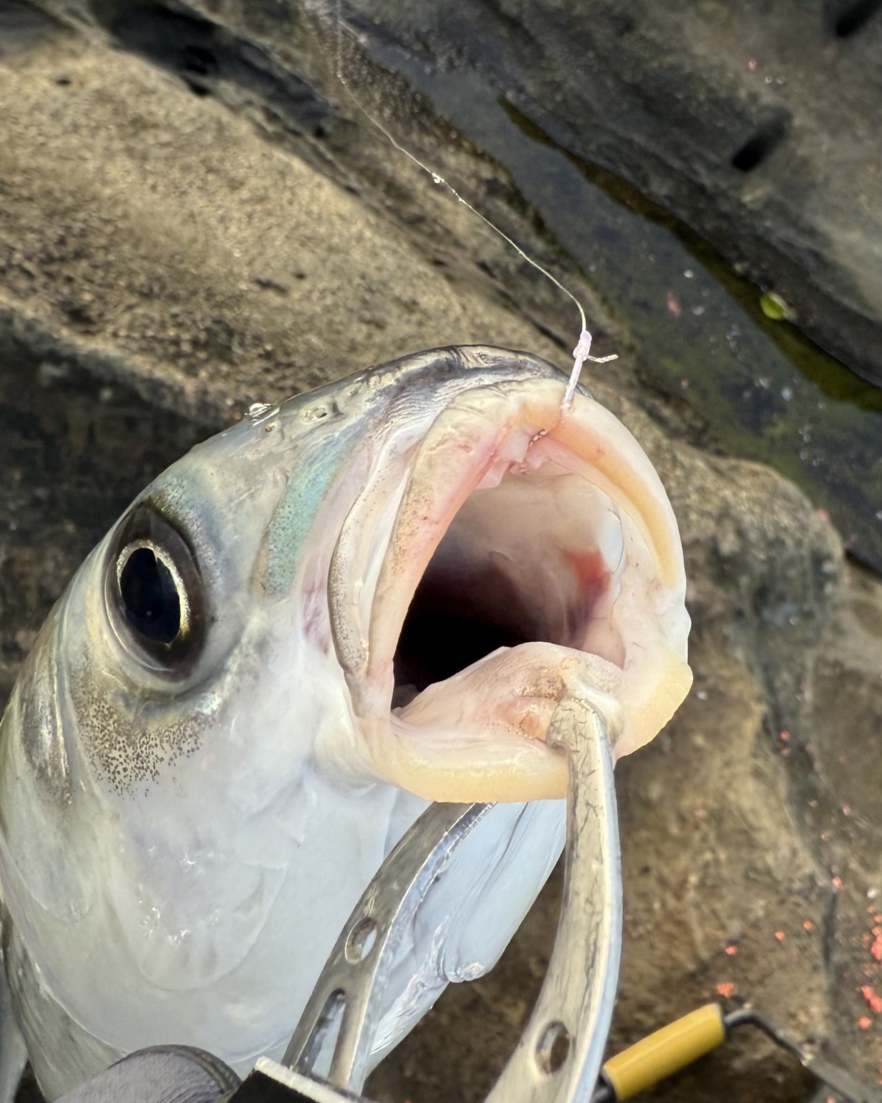 沖スズメハナレに乗りましたが、コマセを撒くとエサ取りがうじゃうじゃだけど下には大きいメジナが見えて苦戦の予感…