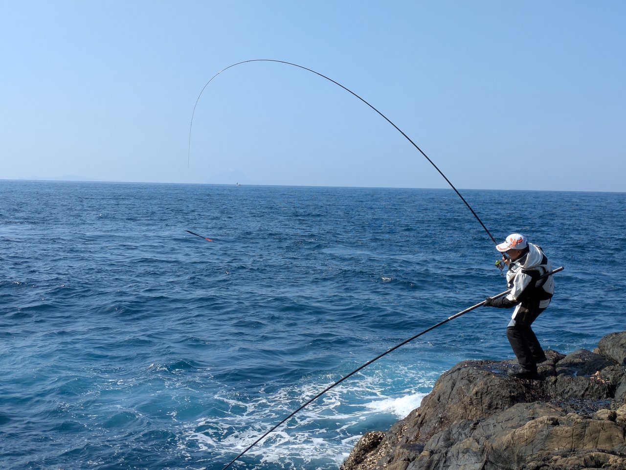 気づけばいつもよりおとなしいサラシと動かない沖の潮・たまにかじられる付けエサ。試行錯誤タイムに突入です。針を4号に落とし、全遊動沈め釣りをしたりしますが、サラシの切れ目や沖の潮目など狙いどころを変えますがアタリは無し。