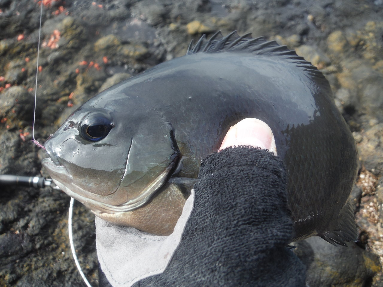 そして、この繰り返しでついにメジナがヒット!!