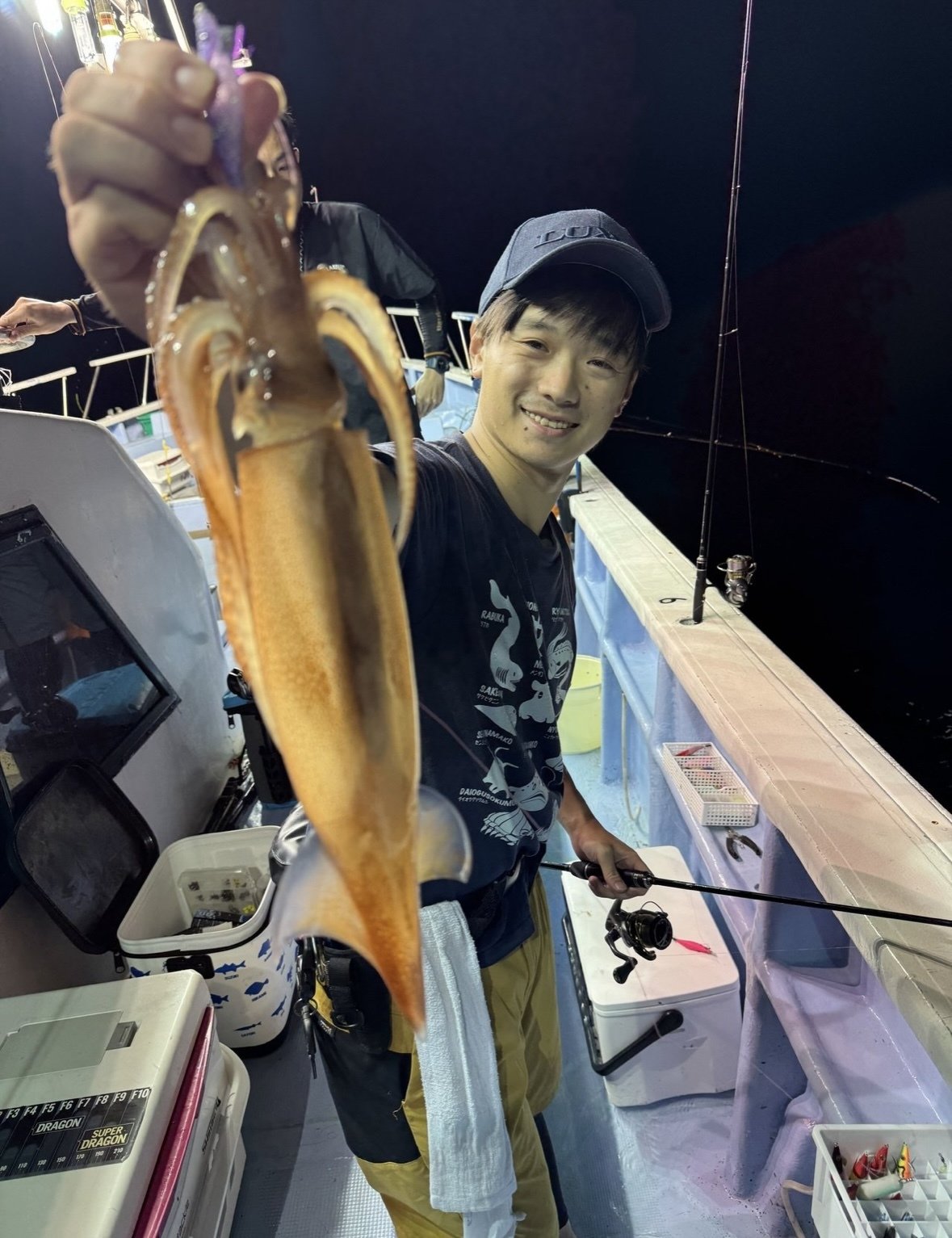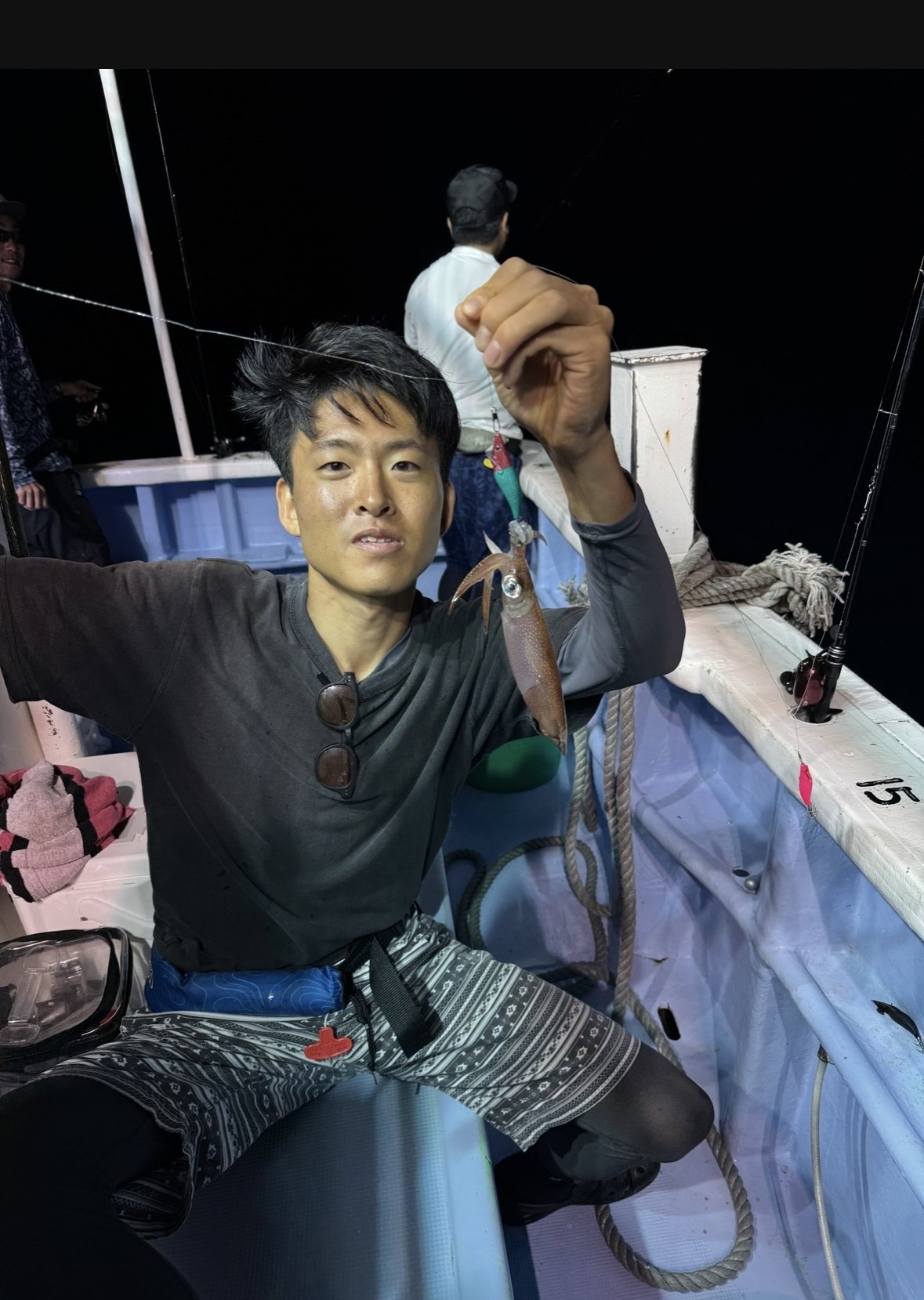 はじめに、道具の説明、釣り方などの説明を受けその後船に乗り込みポイントへ。明るいうちは底を狙っていく為広範囲を探れるオモリグタックルを使用。暗くなりライトが点灯し今度はイカメタルタックルにチェンジしました。この日はサバが多くイカメタルだと途中でサバがかかってしまう為オモリグタックルにまたチェンジし狙っていきましたがイカキャッチならず!シーズンはこれからなので期待して待ちたいと思います。