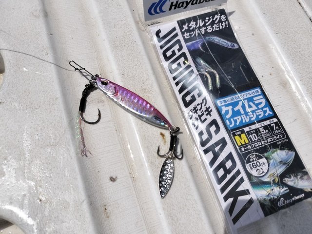 ジグサビキに30gのメタルジグをセットし、着底直後の巻き上げでゴツンッ!!と掛かる感じ。釣れれば良型が約束されていました。