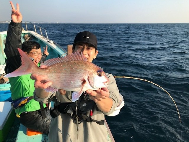 春ののっこみ以来のコマセマダイに行ってきました。もう2年釣れていないのでそれを見かねて本社メンバーからお誘いを受けました。今回お世話になったのは初めての船宿さんのあまさけや丸さん。船長さんの人柄もよくとてもいい船宿さんです。当日は天気もよく、防寒では暑いくらいのいい釣り日和でした。水深50メートル前後で指示棚40メートル前後くらいのポイントをメインでやり、潮が少し早かったので仕掛けを3号ハリスに4Bのガン玉を下から2ヒロくらいにつけてスタート。1投目でアタリがあるのもヒラソウダ。その後も何回かアタリはあるもののことごとくバラすという未熟さ。それでもやっとこさ2年ぶりのマダイにご対面でき久しぶりに喜びが爆発しました。その後はイナダなどの外道はかかりますが本命は見れずにタイムアップ。それでも2年ぶりにコマセでマダイが釣れて満足な釣行でした。