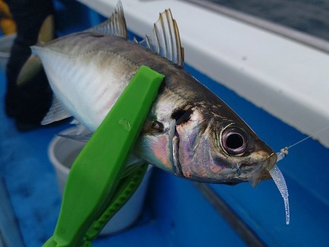 開始早々からボトム付近でイトヨリやサバ、アオハタが釣れ釣れでした。