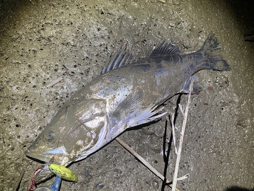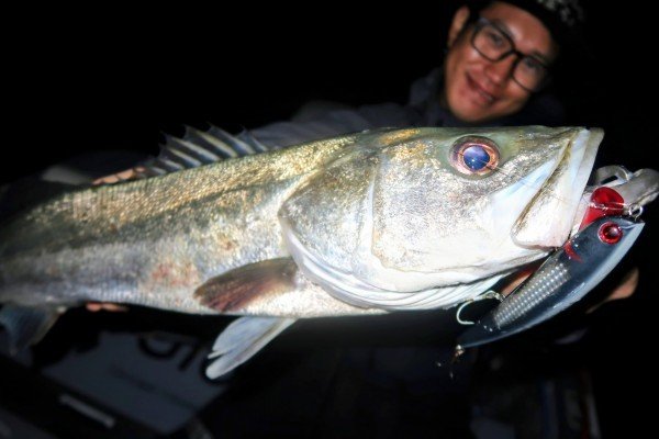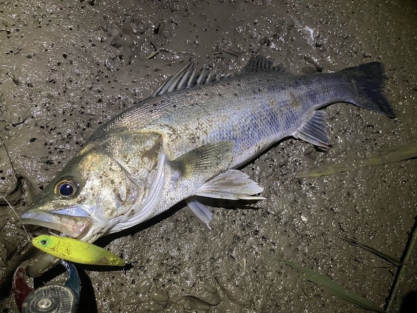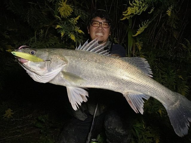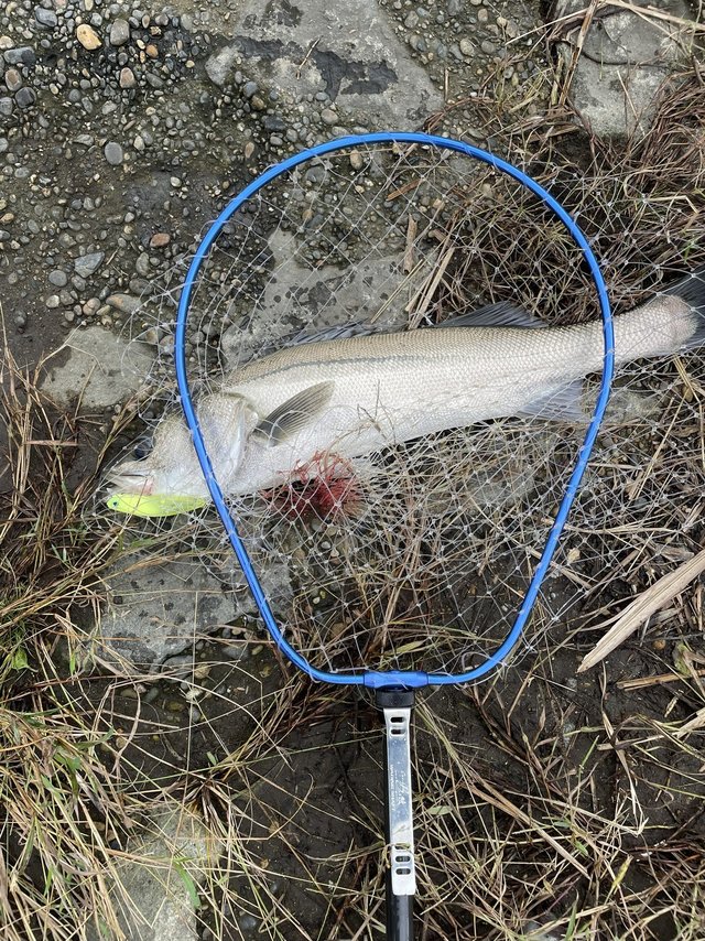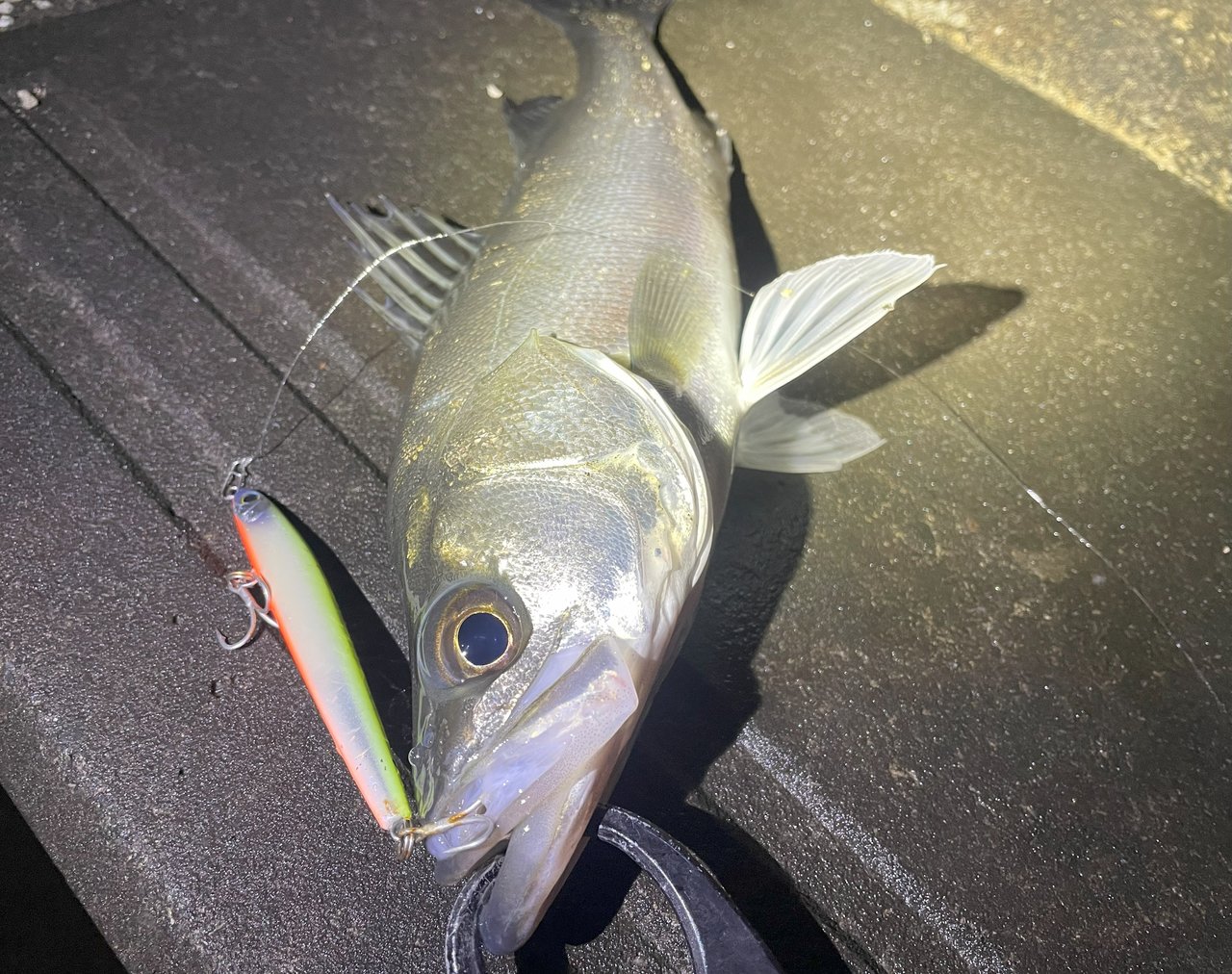今日はダメかなと思いながらもシマノ『トライデント90S』を流していき、緩い流れの中でも一番流れが効いている場所を探しながらキャストしていくと巻き抵抗重くなったなと思った瞬間バイト(笑)40cmくらいですが可愛いサイズがヒット!そこから同じコースで連発!!最後に55cmの良い個体が釣れた所で流れが緩くなり終了!!ダメ潮でも釣れるタイミングはあります!!皆様も是非!!!