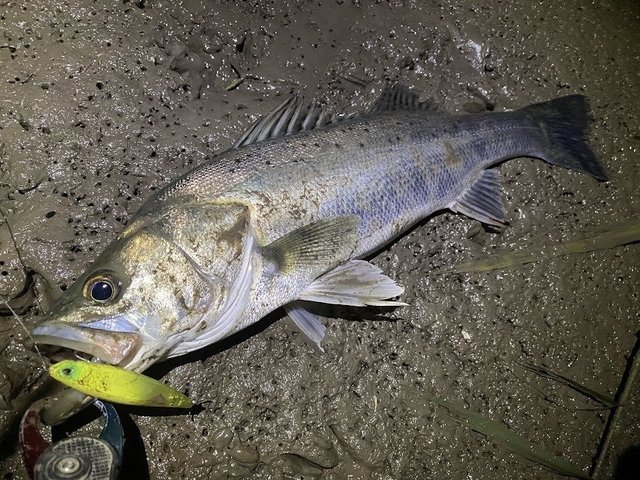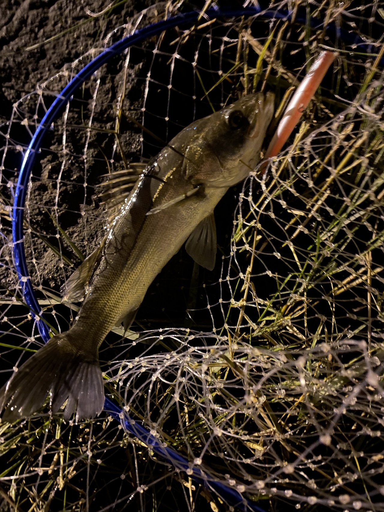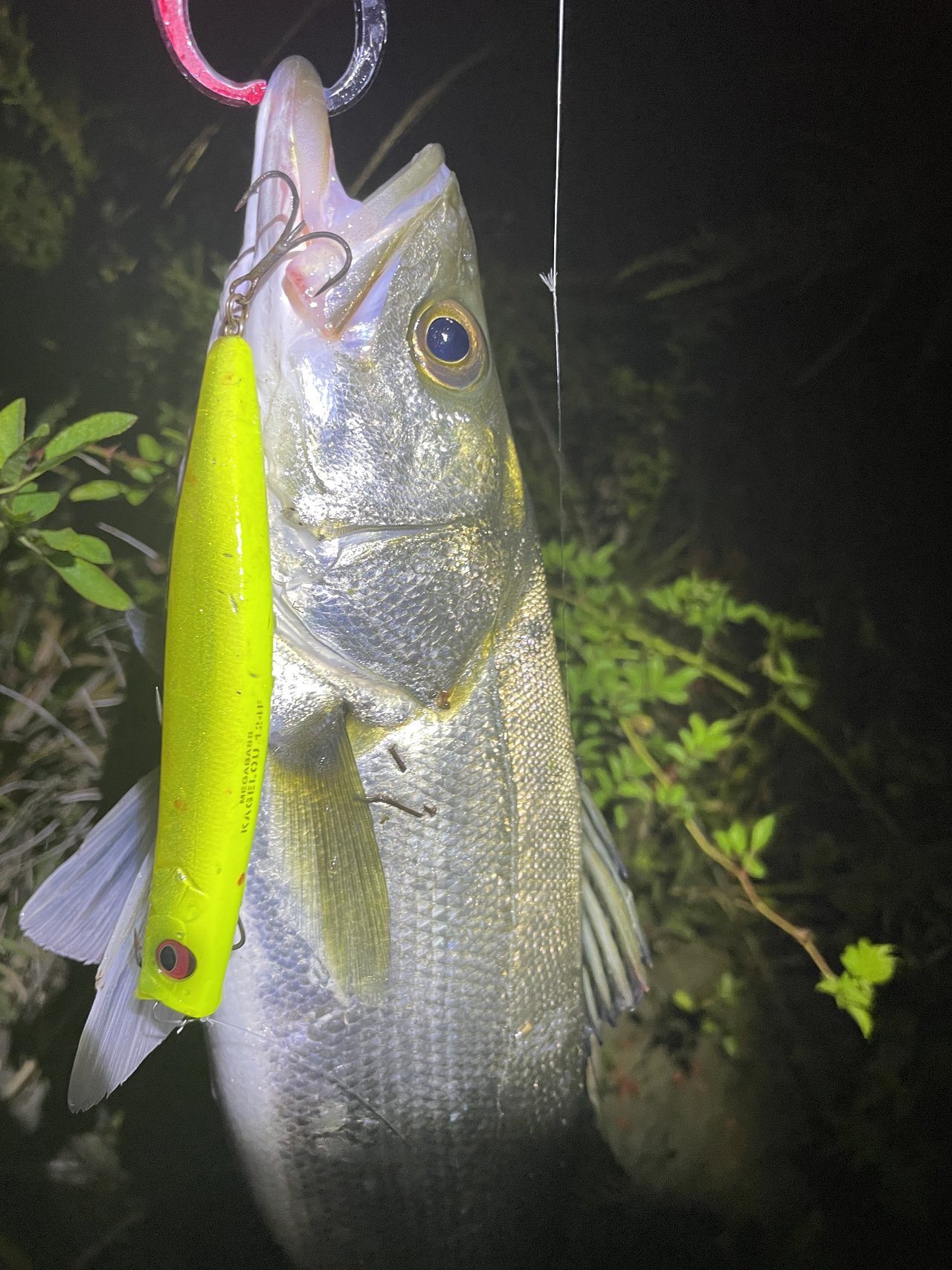 夕方からポイント入り、上げのタイミングで狙ってたポイントに入るも不発!移動して色々試すもノーバイト!!下げ始めのタイミングに期待してそのまま釣行(笑)下げの流れが効き始めたタイミングで念願のヒットも即バラシ…。その後続かず半ば諦めていたところでボラの群れ襲来!!ルアーを流すとすぐボラアタックをくらいますが、耐えてPICKUP『WASP68』を引いている抑え込みバイト!可愛いサイズでしたがようやくキャッチ!!そこから時合突入!!ダウンキャストしてゆっくり引くと連発!!最後には71の良い個体もキャッチして終了!時合15分間くらいでしたね(笑)また行ってきます。