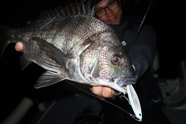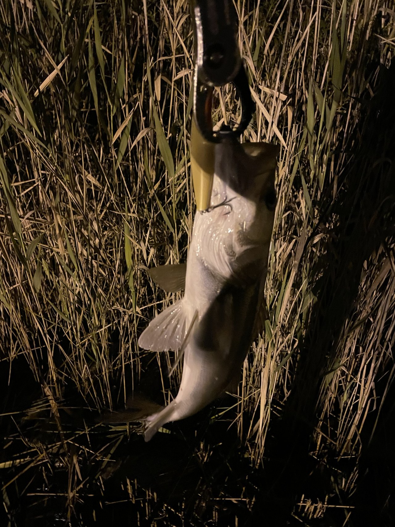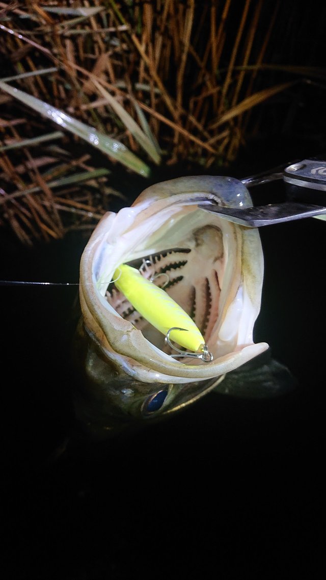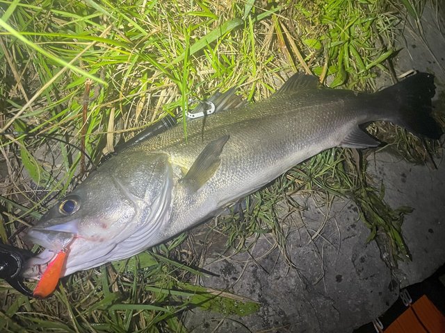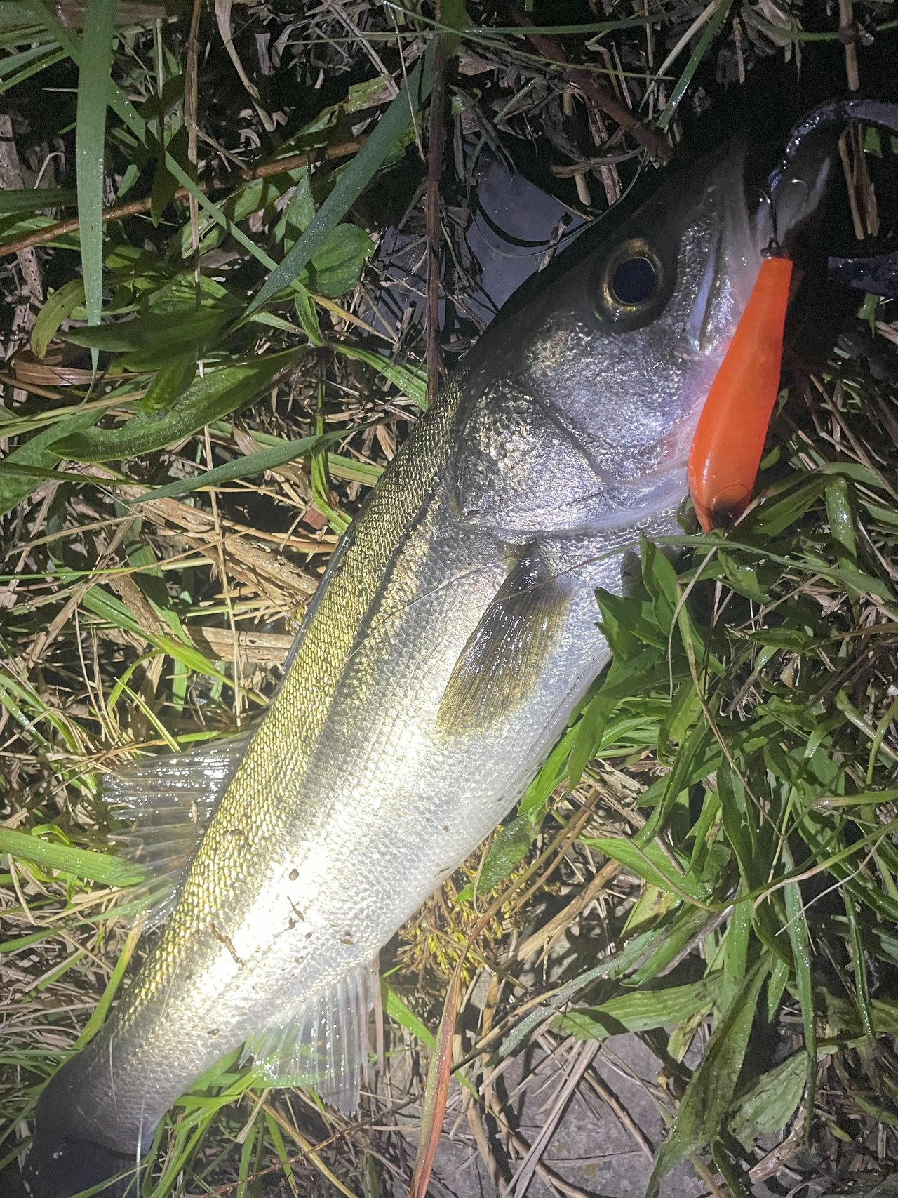 夕方からポイント入り、上げのタイミングで狙ってたポイントに入るも不発!移動して色々試すもノーバイト!!下げ始めのタイミングに期待してそのまま釣行(笑)下げの流れが効き始めたタイミングで念願のヒットも即バラシ…。その後続かず半ば諦めていたところでボラの群れ襲来!!ルアーを流すとすぐボラアタックをくらいますが、耐えてPICKUP『WASP68』を引いている抑え込みバイト!可愛いサイズでしたがようやくキャッチ!!そこから時合突入!!ダウンキャストしてゆっくり引くと連発!!最後には71の良い個体もキャッチして終了!時合15分間くらいでしたね(笑)また行ってきます。