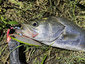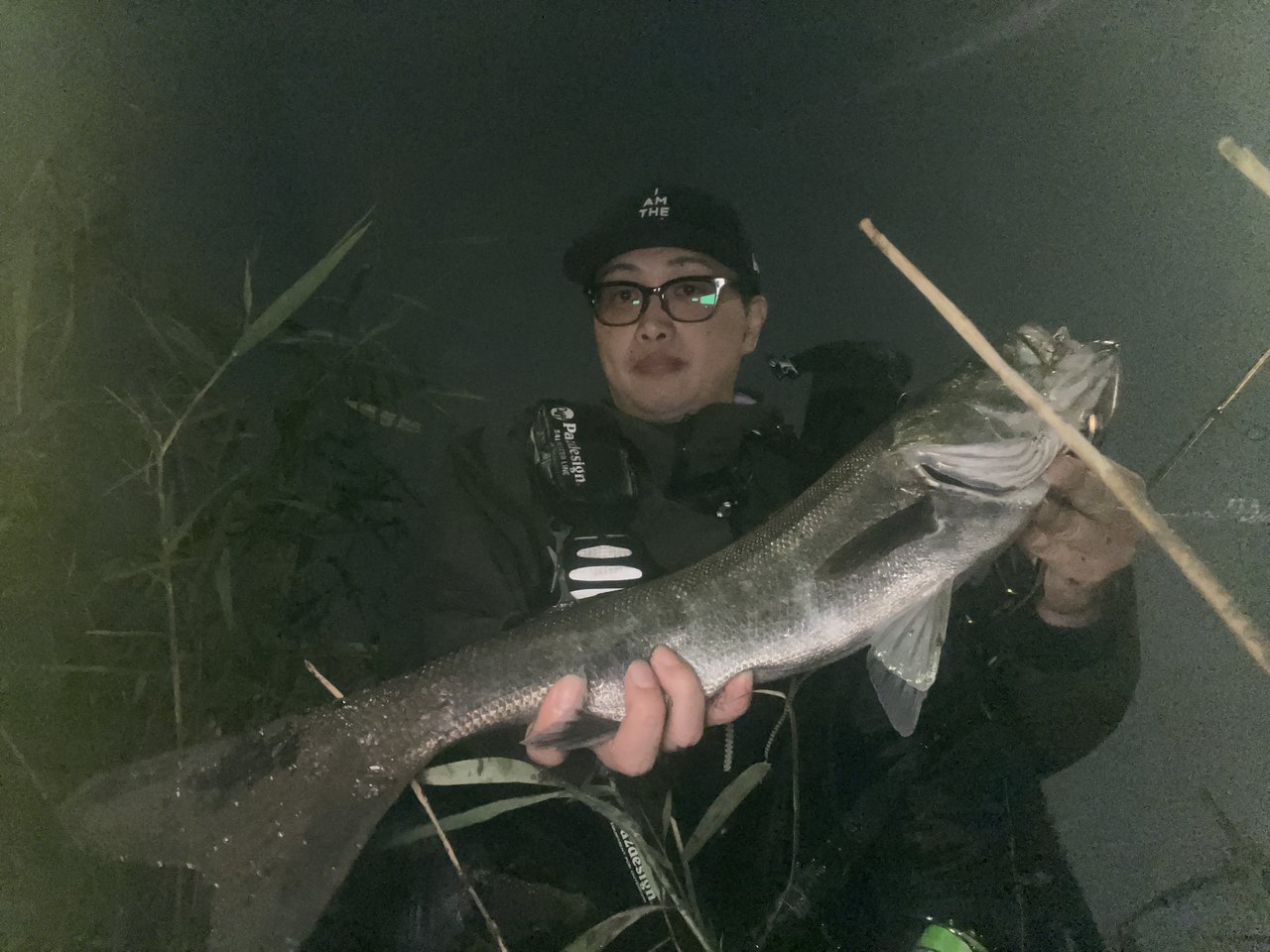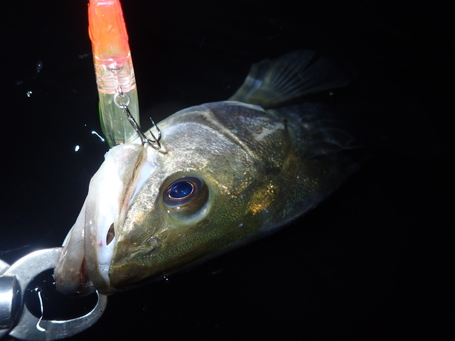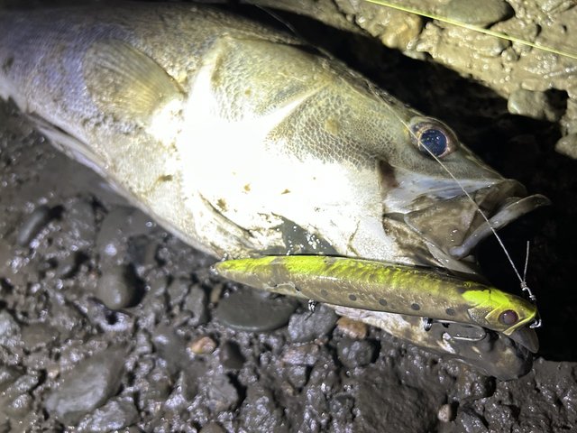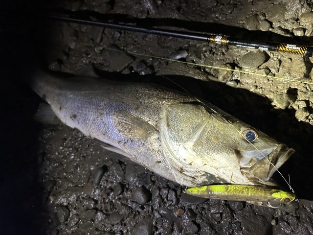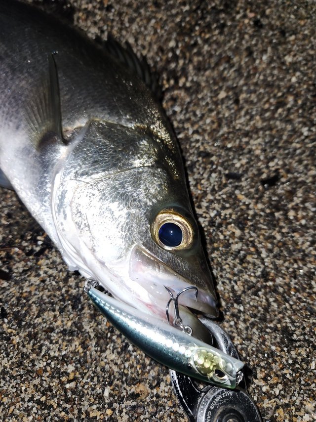 風が強くなるまでの短時間ですがベイトのイナッコはかなりの量入ってました♪頻発はしてませんがボイルもありシーバスがいる事は確認でき表層付近からスタート。しかしなかなかバイトが無く色々なレンジを試してみましたがノー感じ。流れが速くなったタイミングでバンクを少し遠目から流してくると待望のヒット!なんとかキャッチできました!その後はショートバイトはあるものの乗らず風が強くなってきた為撤収しました。シーバスはだいぶ入ってきた印象です!