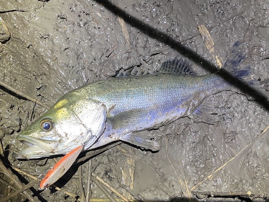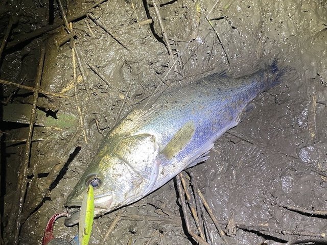 有明方面にシーバス釣行。まずは先週デカいのをバラしたポイントへ。対岸でボイルしているも喰わせられないまま沈黙したので早めに見切り移動。橋の明暗でボイルしまくっているポイントを発見。これはもらったとセイランやサーフェイスコントローラー118Fをはじめ、12cm前後のルアーをいろいろ試すも反応なし。大き目のベイトを想定したので、手持ちの小さめのルアーはラルタン72Sとサーフェイスコントローラー80のみ。ボイル祭りは継続中の中、まずはラルタン。魚にスレて当たるもバイトなし。続いてサーフェイスコントローラー80。流し方、速度を調整。アップにキャストし、リールをほとんど巻かず、先行したラインのテンションで漂わせる様に明暗に流した時に遂にヒット!60cmくらいの魚をキャッチ♪パターンが分かったら後は入れ喰いモード突入。50~60cmアベレージで15本程キャッチ。途中で写真を撮るのをやめるくらい怒涛のラッシュ。最後は手間のヌカるんだ立ち入れない潟が広がり取り込み困難ギリギリの潮位で75cmの本日最大魚もキャッチ!まだボイルは続いていましたが、魚をキャッチ&リリース出来ない潮位になり強制終了。全身ドロまみれになりましたが熱い夜でした♪