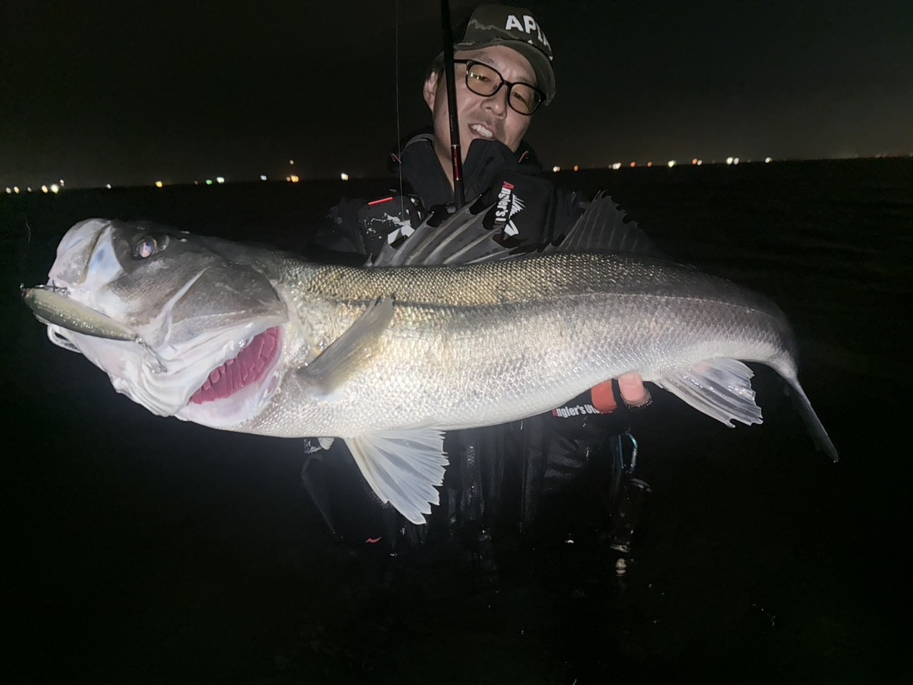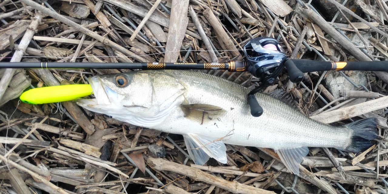 コノシロが入った河川でのウェーディング。満潮潮止まりから潮位が下がるのに合わせて、移動しながら探っていきました。しかし、潮周りは若潮だったのでなかなか下がらず、流れも緩く大苦戦。最後はコノシロが溜まっているシャローエリアで粘って何とか1本キャッチできました。