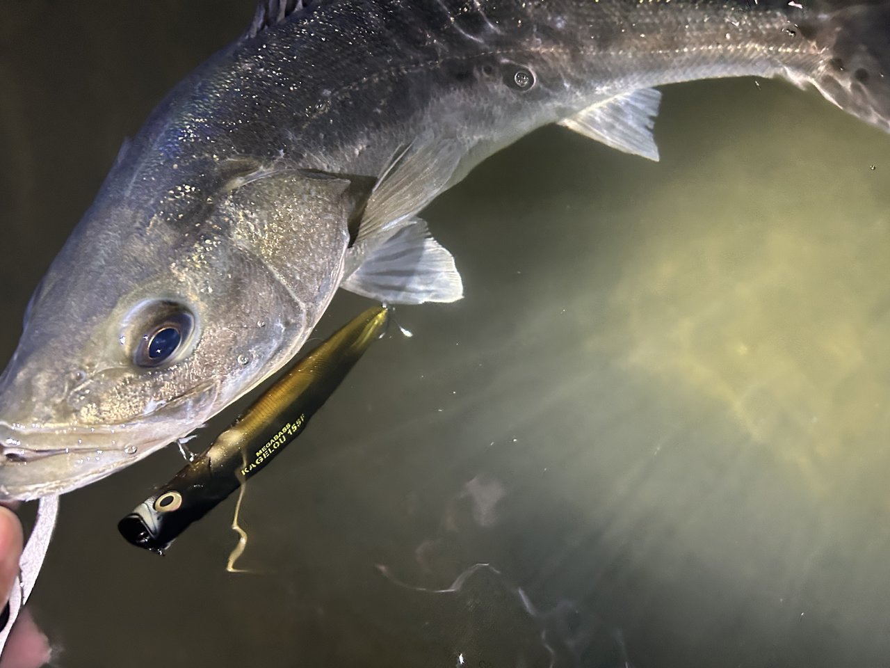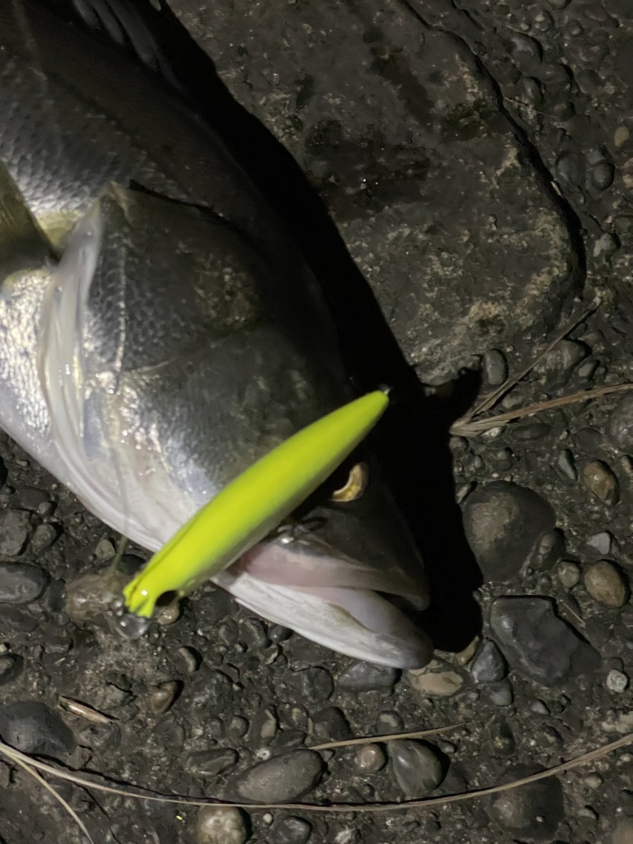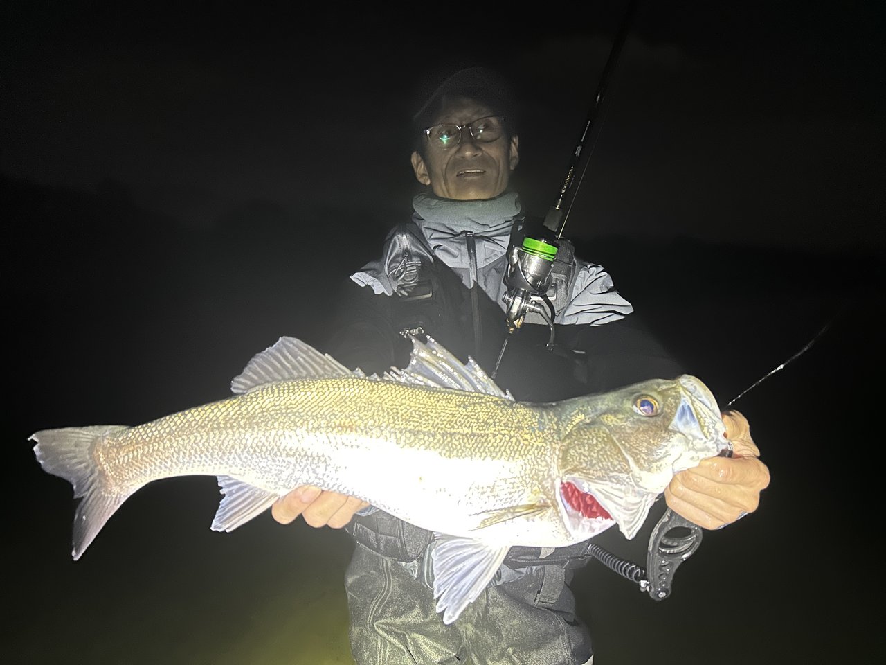 コノシロに着いたシーバスを求めて、河口部へエントリー!しかしコノシロの姿は無く、無反応な時間が続きます。根気強くルアーを動かすと、突然割れる水面!心地良い音と共に、手元へ伝わる重量感。綺麗な魚が釣れてくれました!秋はまだまだこれから!楽しみな日々が続きます。