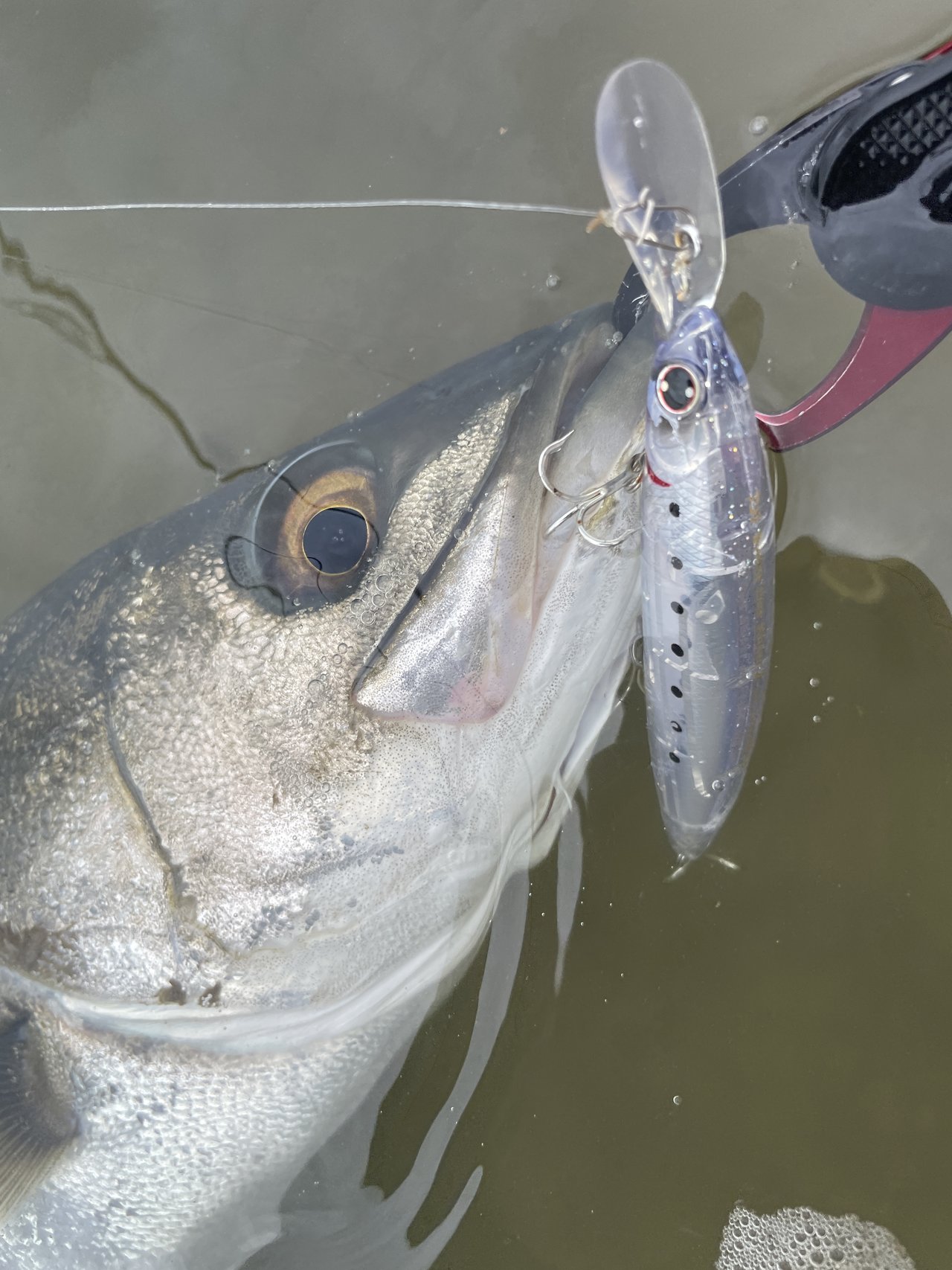 そこでZeeee!の新製品ラルタン72Sにチェンジするとすぐにヒット!一安心の1本をキャッチ。その後ボイルのタイミングや流すコースを変え、ラルタンで更に追加。ラルタンにスレたのでサーフェイスコントローラー80にチェンジすると更に追加!合計3本キャッチし時合終了でした。