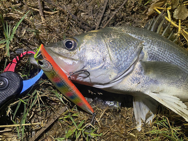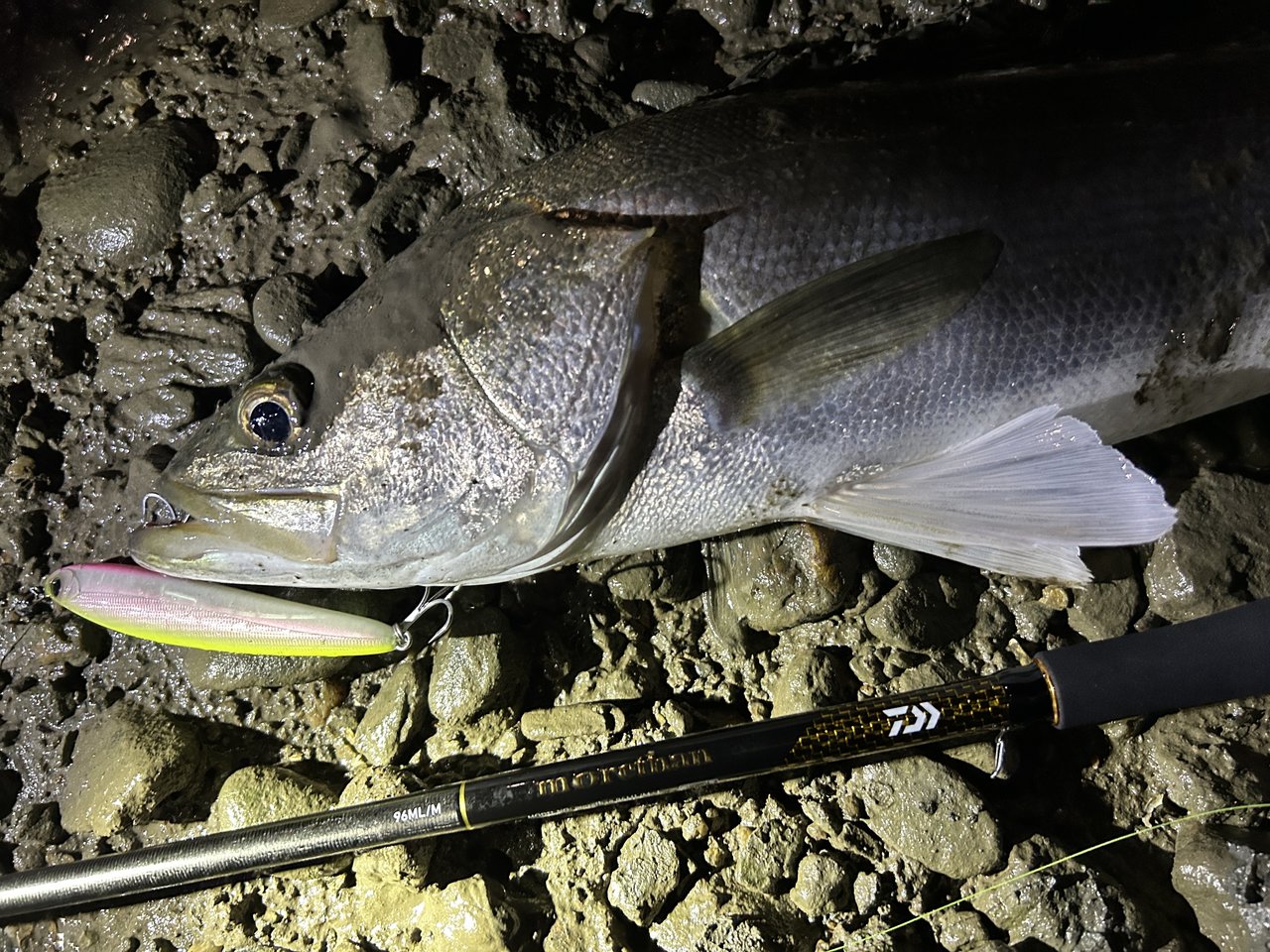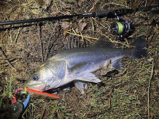 夏シーバスを思わせる強い引きのレギュラーサイズをキャッチできました!