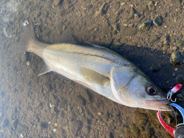 幸いいつものポイントは濁り少なく、ベイトのハクも居てむしろ丁度いい感じなので期待しかありませんでしたが案の定バイト多く、シーバスまでヒット!