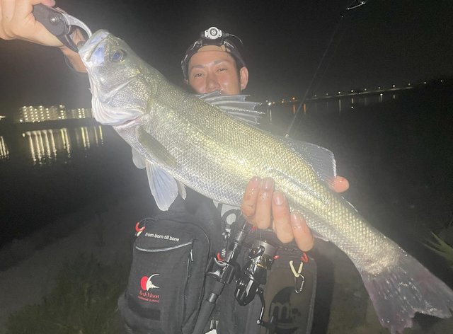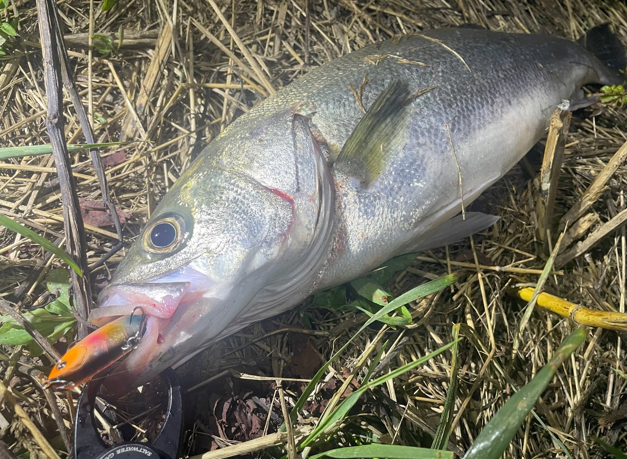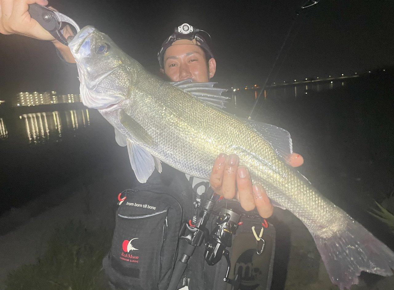 こんにちは!泉バイパス店佐藤です。地元の友人とシーバス釣りに行ってきました!!上げから釣りをスタートしますが、長潮という事もあり流れが全く効かず苦戦…(笑)キャストを続けると少し流れが効いたタイミングで「レビンミニヘビー」で50クラスのシーバスをキャッチ!!やはりレビンシリーズはエサですわ(笑)しかしその後続かず、上げ止まりのタイミングで場所移動!下げの流れが効くまでひたすら投げ続けますが何も無い状況が続き、少しずつ流れが効き始めたタイミングで「WASP68」のスロー巻きでショートバイト…。投げ続けるとついにヒット!!60センチびったりの良い個体のシーバスをゲット!長潮就業でしたね…(笑)また行ってきます!!