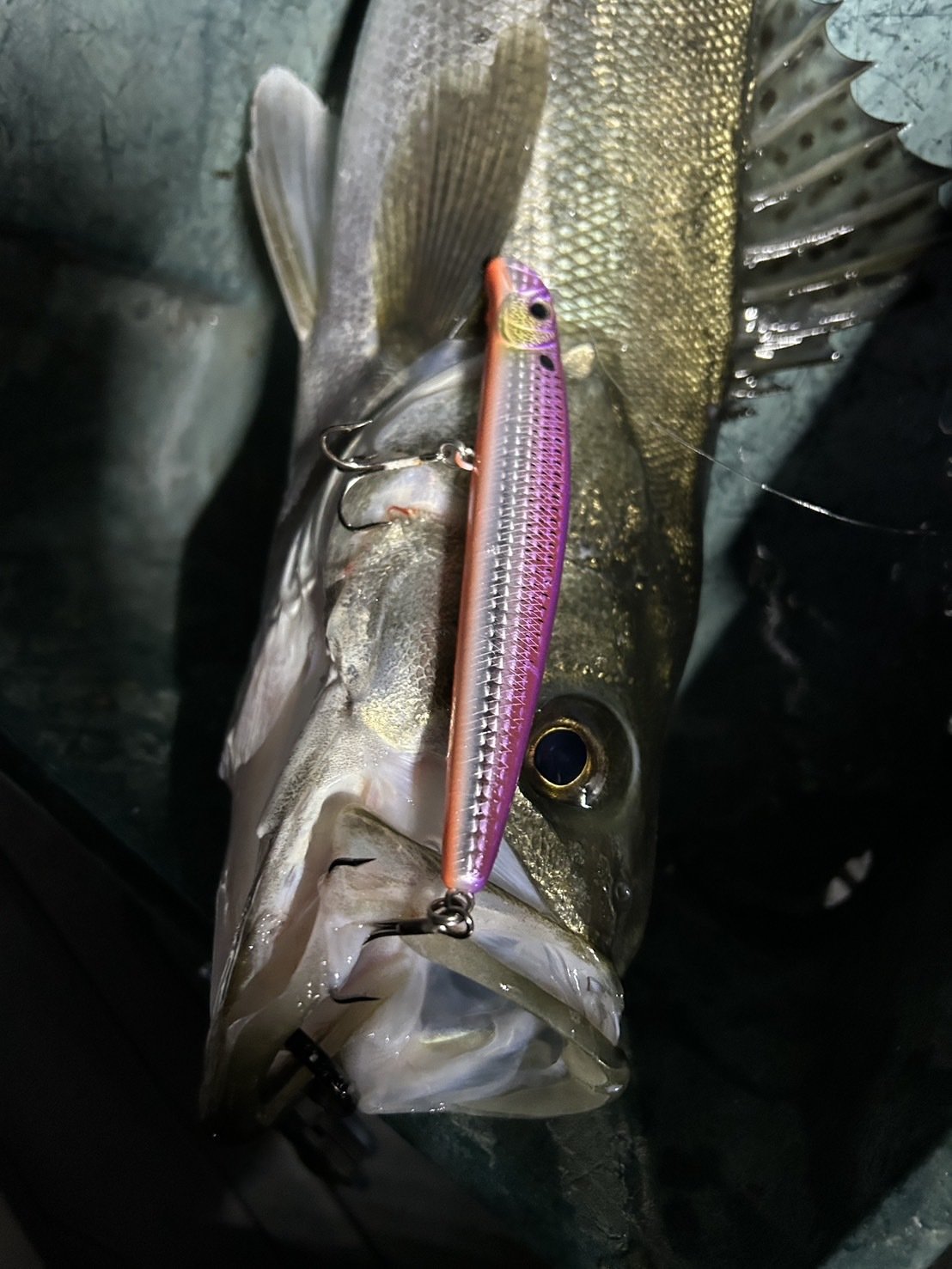前半はキャスティングをメインに!表層~中層、比較的浮いている魚にルアーをアピールするとすぐに反応が!60センチの量型シーバスをゲットすることができました。