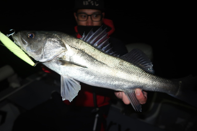 後半はジギングで40~50センチのシーバスを数匹キャッチ。