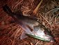 COREMANのアルカリシャッドにカルティバの静ヘッドの組み合わせでボトムを引きずるように引いてくると、痛快なアタリ!