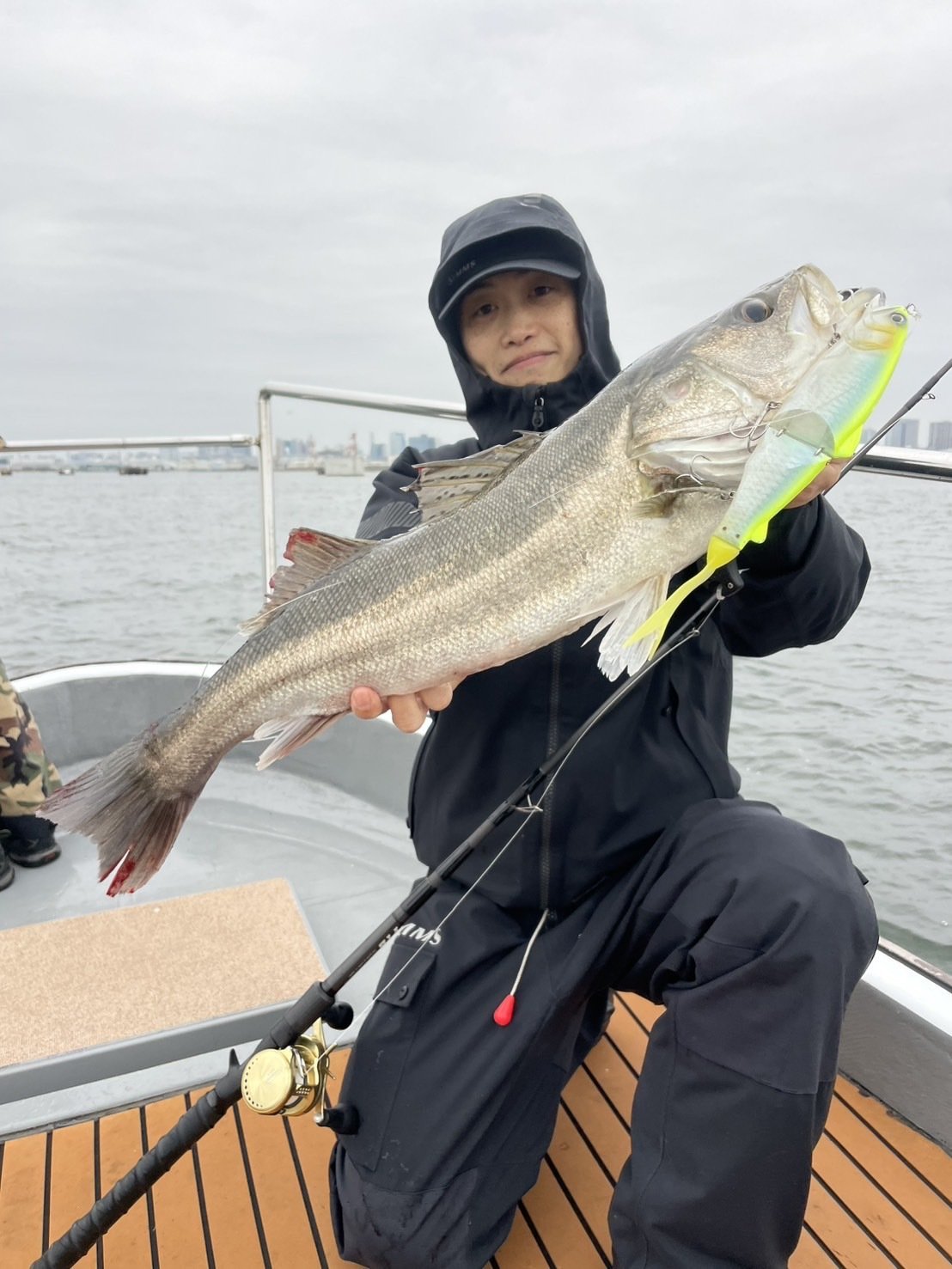 ビッグベイトシーバス&サワラの贅沢便!まずはシーバスからスタート。反応はまずまずでトップには出きらないものの、少しレンジを入れるとバイトとチェイスは多くもらえ船中全員安打で幸先良し(^^♪そこからサワラを追いかけぷち移動。サイズは上がりませんでしたが、サゴシは元気なご様子でまたまた全員安打。シーバスが調子良さそうなので最後はシーバスをやり切りました。冬かと思うくらい寒かったですが釣果に恵まれたのでめでたしめでたし(^^)v