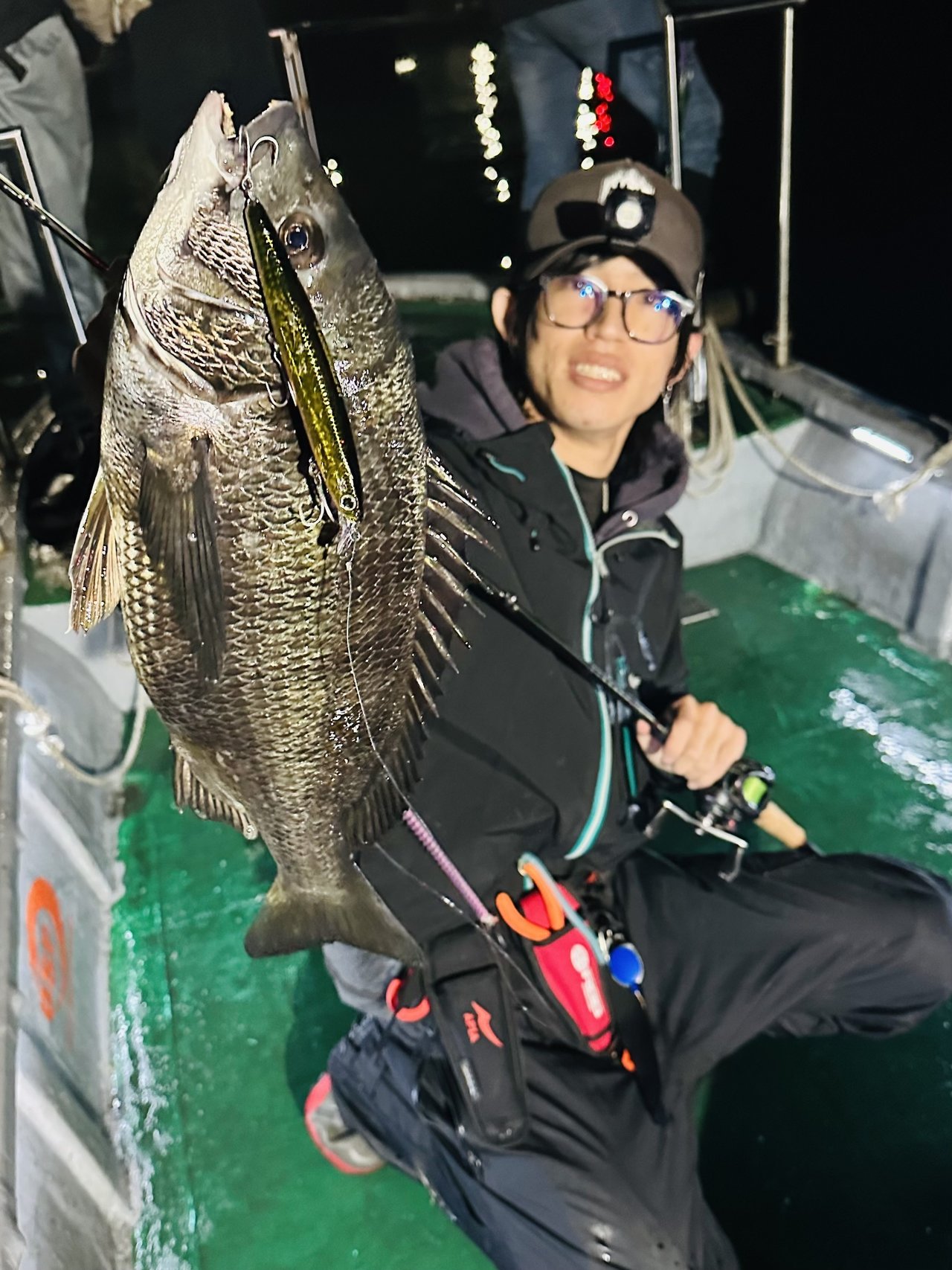 船内60〜70cmがボコボコ釣れる中、なんとボートシーバス初挑戦の方が86cmキャッチ!!!
