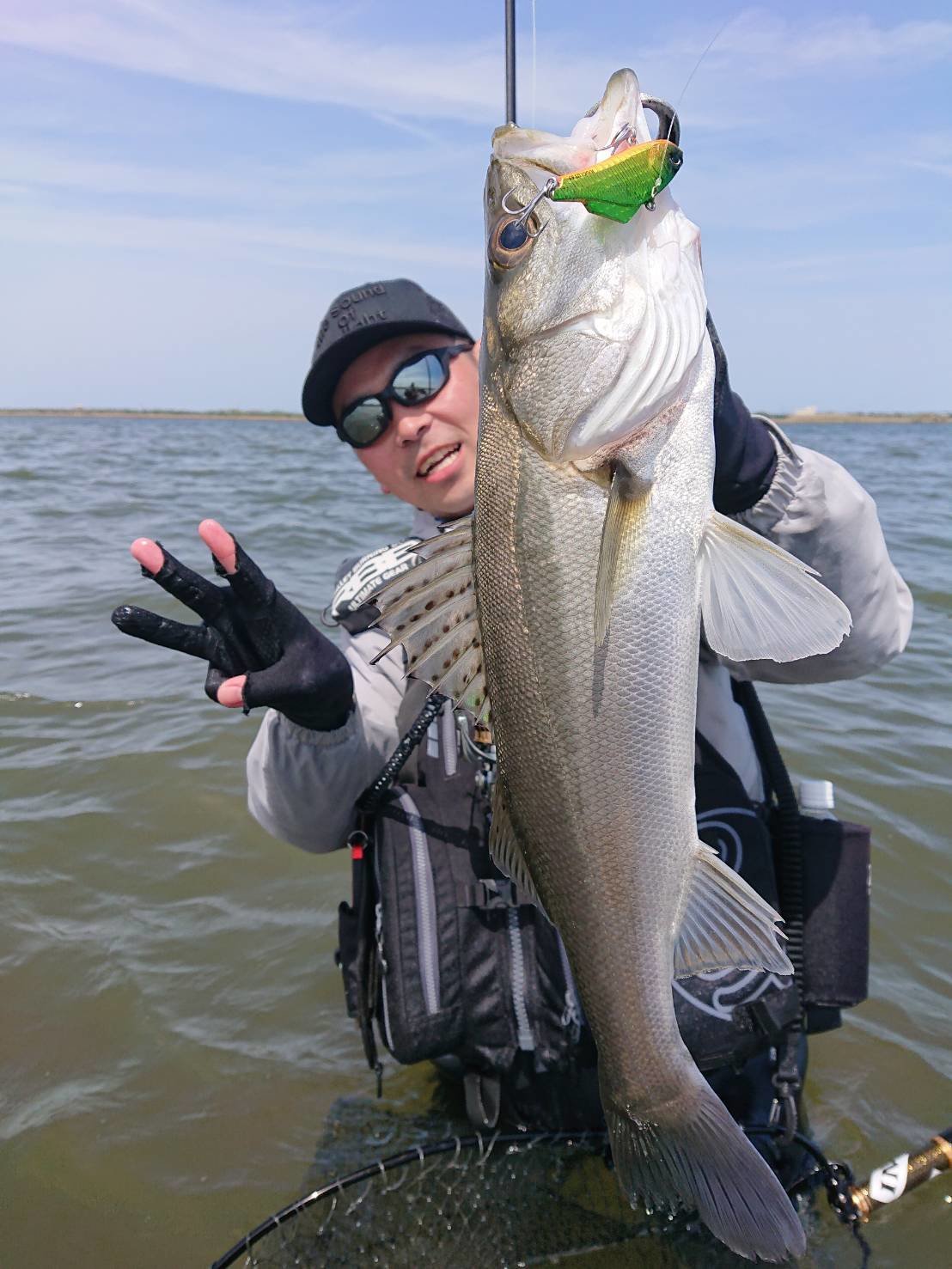 風表のエリアで、まずは陸っぱり!強烈な風が吹き荒ぶ状況でしたが、imaのシュナイダーで風を切り裂き、元気な魚たちの元へ!青空の下のシーバスたちは太陽に照らされ、綺麗な姿を見せてくれました。風がさらに強くなったところで、風裏のウェーディングスポットへエントリー!爽快にフルキャストしルアーをブレイクラインへ!こちらでも魚たちは元気いっぱい!心地良いひと時を過ごすことが出来ました。